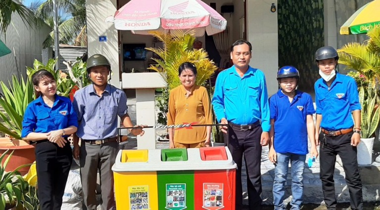Tỉnh đoàn trao tặng người dân 20 bộ thùng rác