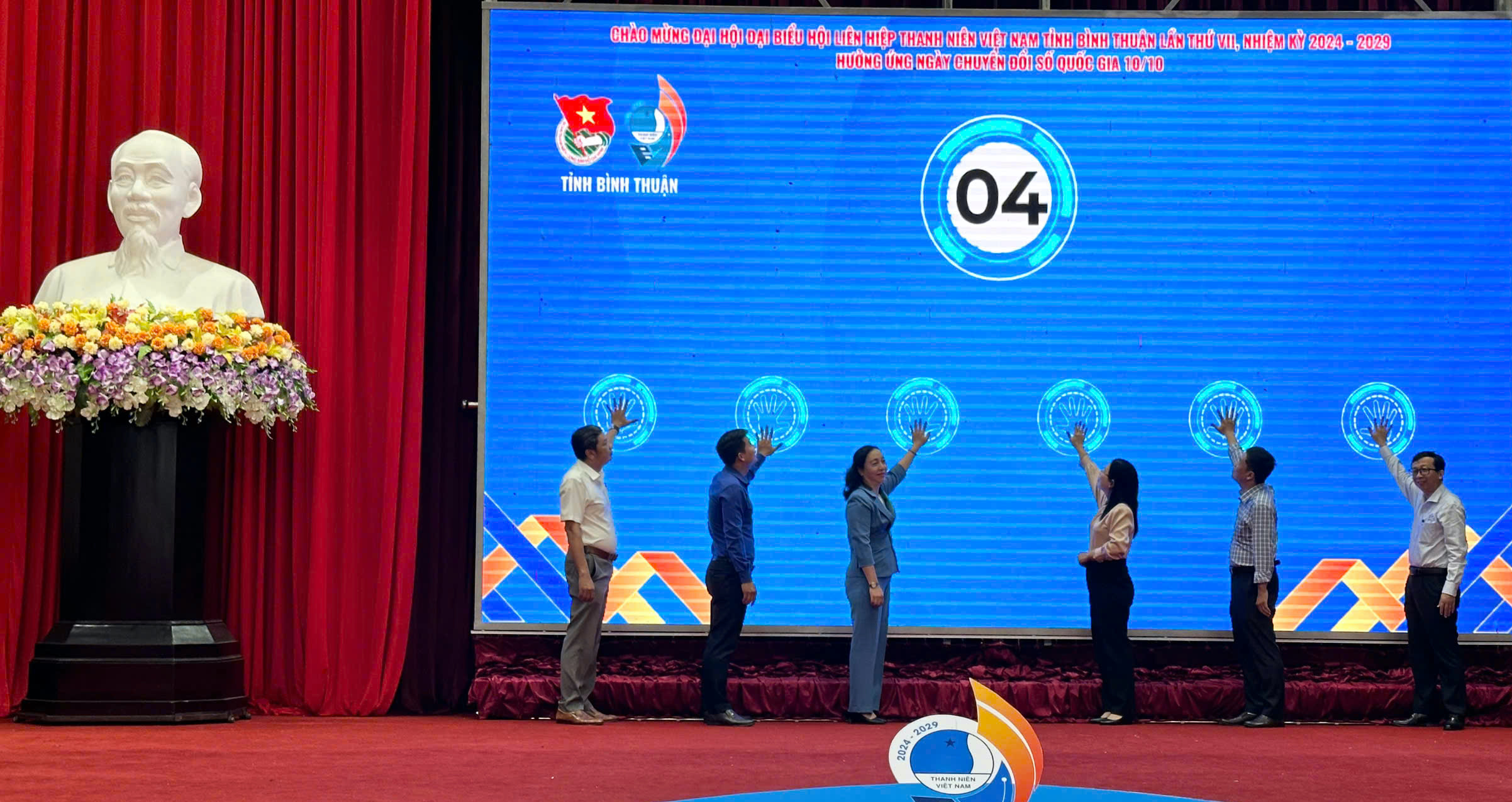 Các đại biểu khách mời thực hiện nghi thức khởi động Liên hoan tuổi trẻ sáng tạo tỉnh Bình Thuận năm 2024