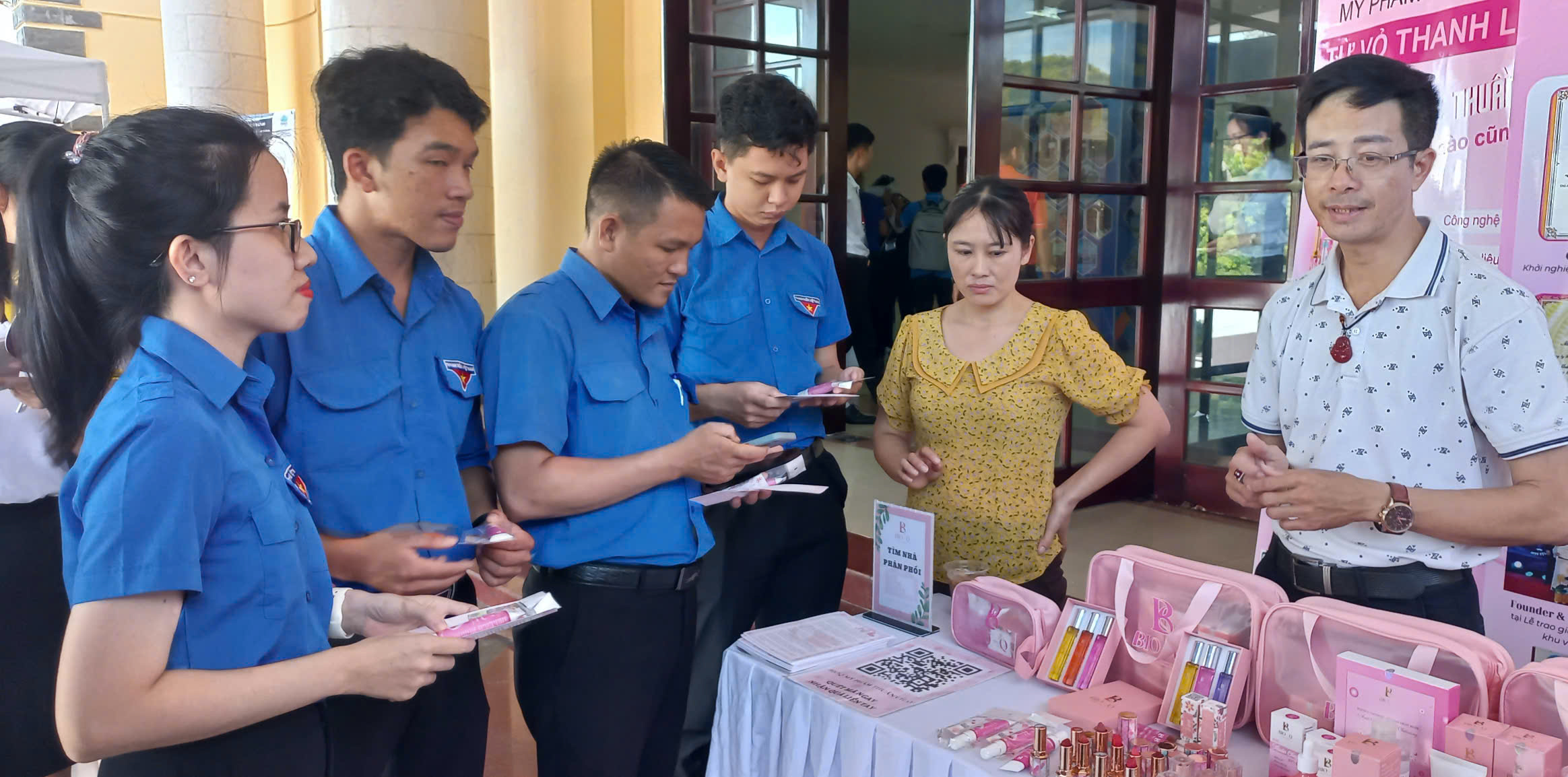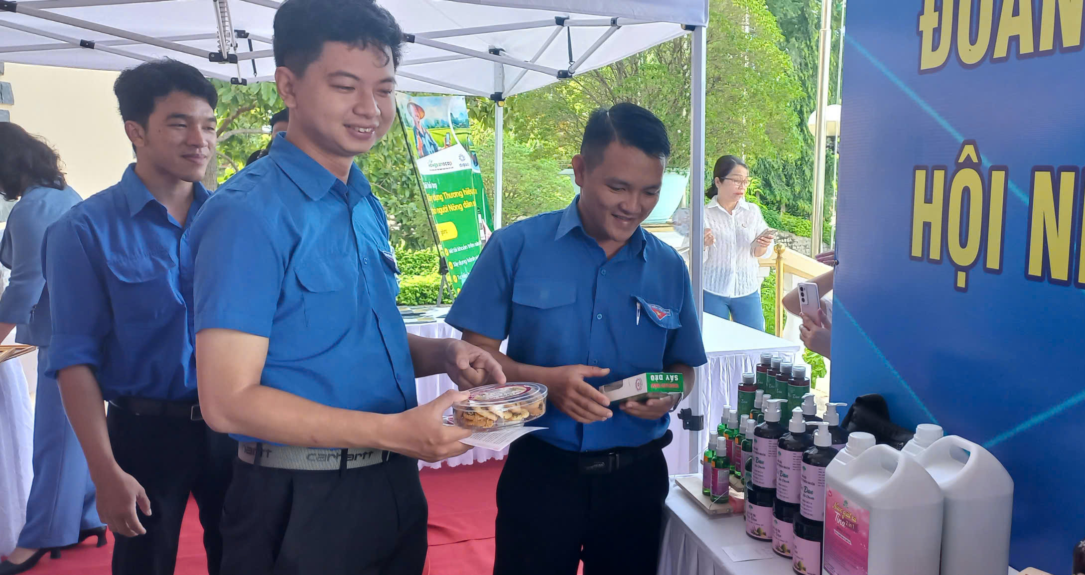 Đoàn viên thanh niên tham quan các gian hàng khởi nghiệp của tuổi trẻ Bình Thuận