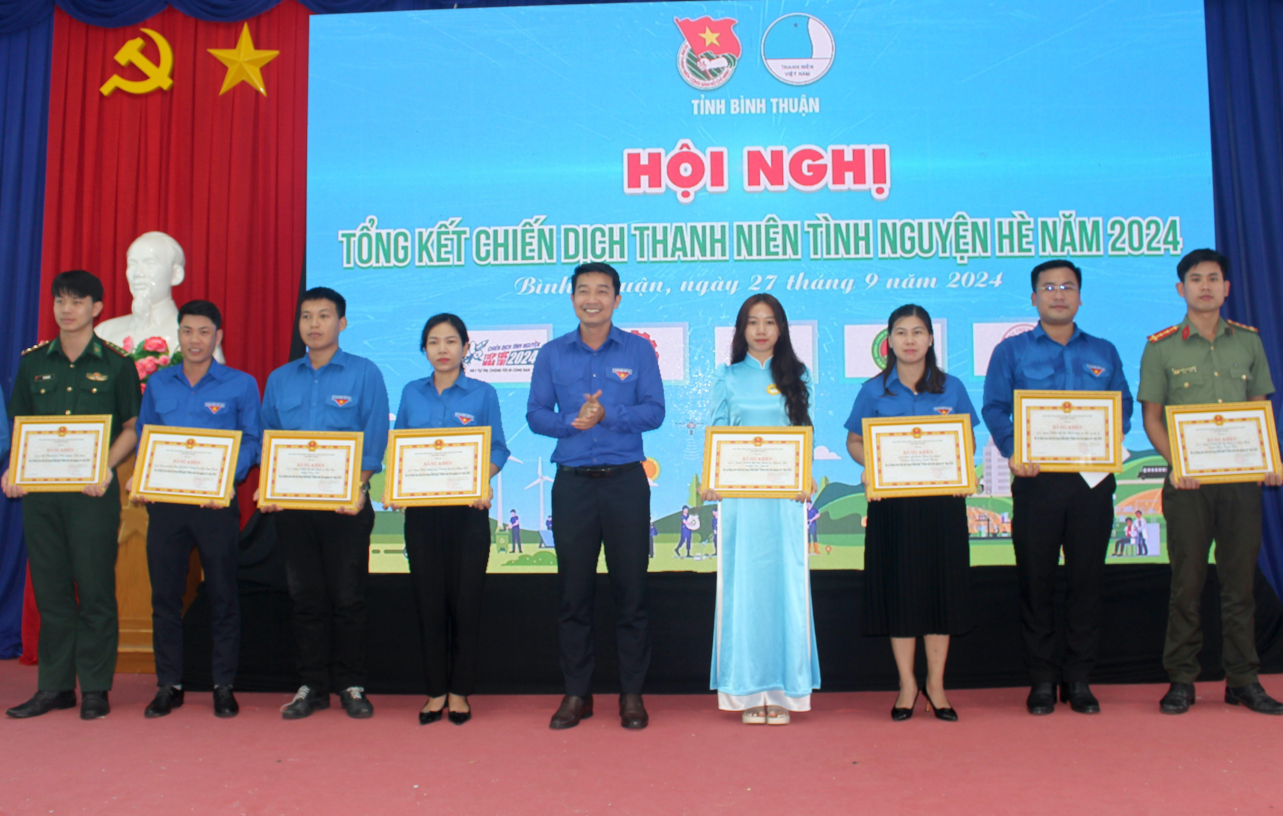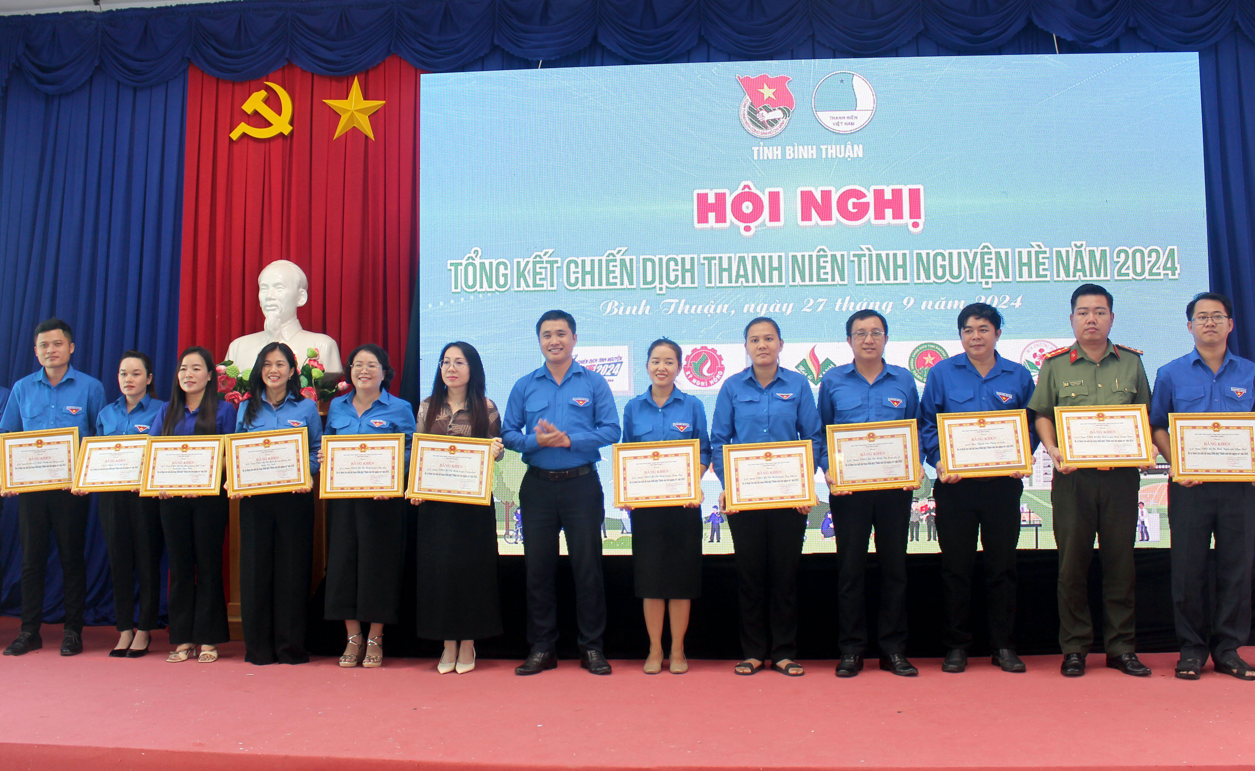 BCH Tỉnh đoàn Bình Thuận trao tặng bằng khen cho các tập thể và cá nhân có thành tích xuất sắc trong Chiến dịch Thanh niên tình nguyện hè vừa qua