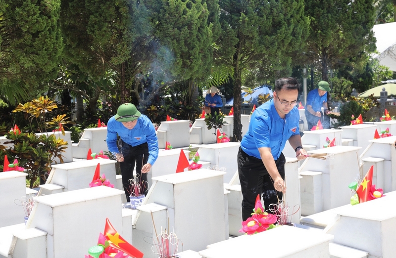 ĐVTN Ban Tổ chức Trung ương thắp hương trên phần mộ các anh hùng liệt sỹ hi sinh trên mặt trận Vị Xuyên