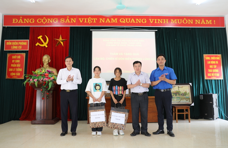 Tiếp tục hoạt động tri ân nhân kỷ niệm 75 năm Ngày Thương binh - Liệt sỹ 27-7 tại Hà Giang, ngày 23/7, Công đoàn, Đoàn Thanh niên, Hội Cựu Chiến binh Ban Tổ chức Trung ương đã tới thăm Đồn Biên phòng Lũng Cú tại tỉnh Hà Giang.