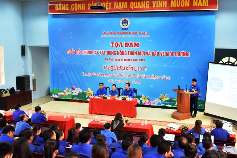Theo đó, chiều ngày 21/5, Đoàn đã tham gia buổi tọa đàm “Tuổi trẻ chung tay xây dựng nông thôn mới và bảo vệ môi trường”. Tại buổi tọa đàm, đại biểu thanh niên nước bạn Lào và tuổi trẻ Hà Tĩnh đã cùng thảo luận, chia sẻ, trao đổi kinh nghiệm phong trào tuổi trẻ chung tay xây dựng NTM và tham gia bảo vệ môi trường; giới thiệu những mô hình mới, cách làm hay nhằm đẩy mạnh và nâng cao hiệu quả của phong trào tuổi trẻ xây dựng NTM. Hai bên cũng đã nêu cao vai trò của thanh niên đối với trong việc áp dụng các tiến bộ khoa học kỹ thuật vào sản xuất nông nghiệp đem lại giá trị cao. Đồng thời, đưa ra hiện trạng và những tác động tiêu cực của biến đổi khí hậu ảnh hưởng đến phát triển KT-XH, môi trường… một số mô hình của tuổi trẻ đối với cải thiện môi trường, chống biến đổi khí hậu.