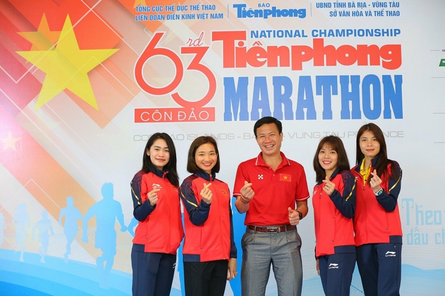 Các thành viên của đội tuyển điền kinh quốc gia tham dự Tiền Phong Marathon 2022