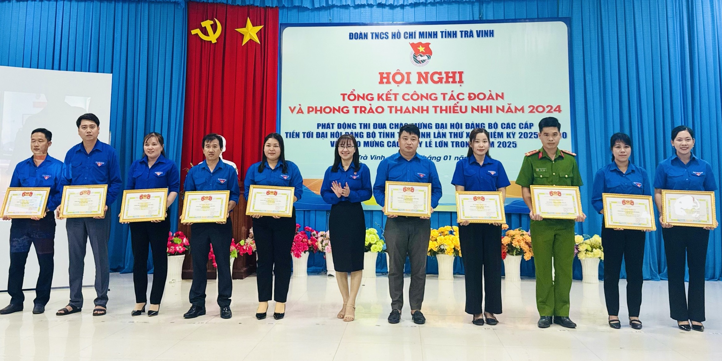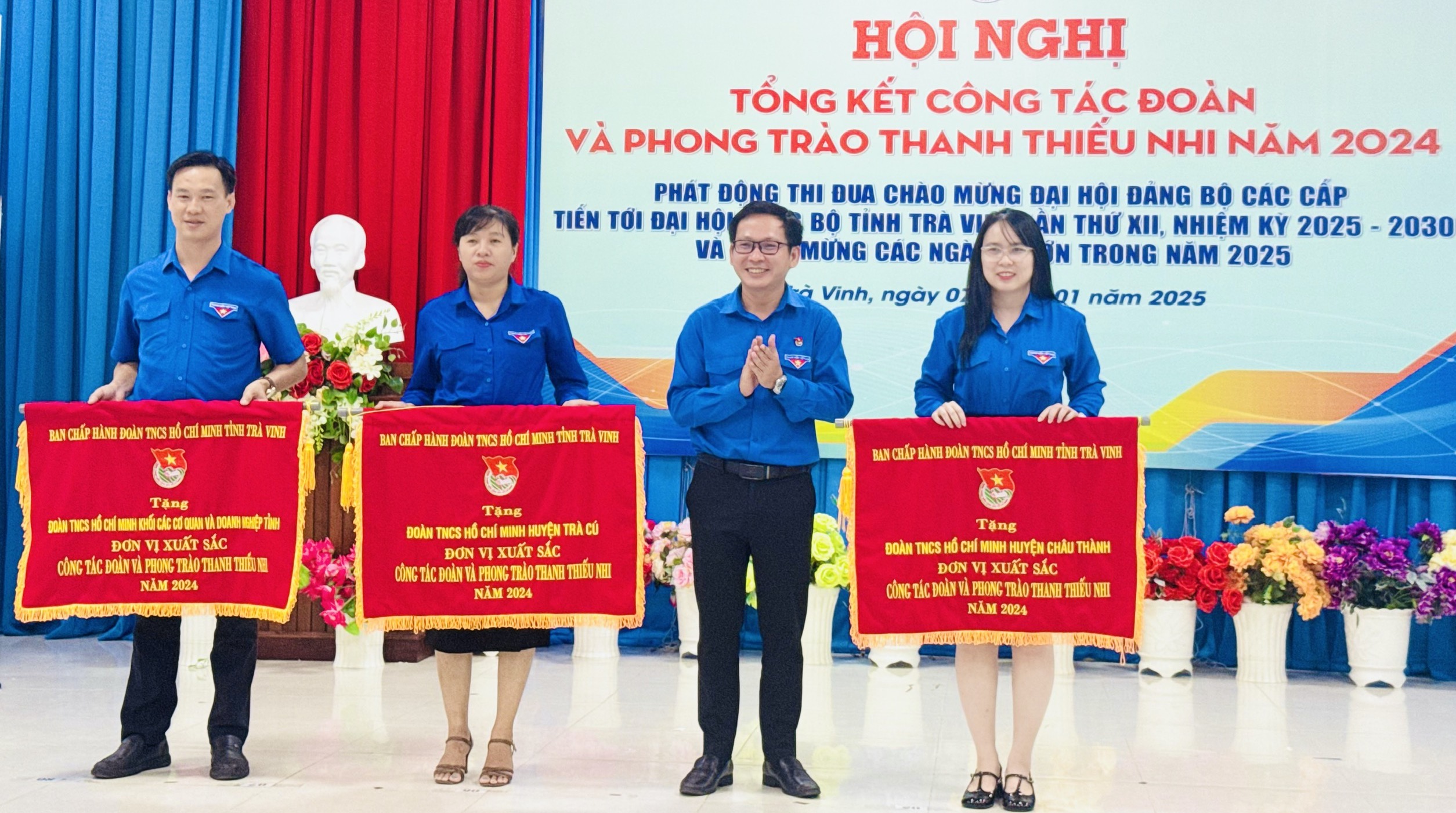 Nhân dịp này, Ban Thường vụ Tỉnh đoàn tặng cờ thi đua cho 03 đơn vị đoàn cấp huyện gồm Huyện đoàn Châu Thành, Đoàn Khối các cơ quan và doanh nghiệp tỉnh, Huyện đoàn Trà Cú và 04 cờ thi đua cấp cơ sở cho đơn vị xã đoàn Tân Hoà huyện Tiểu Cần, xã đoàn Thông Hoà, huyện Cầu Kè, xã Đoàn Mỹ Long Nam huyện Cầu Ngang và Thị trấn Càng Long huyện Càng Long; trao bằng khen cho các tập thể, cá nhân có thành tích xuất sắc trong công tác đoàn và phong trào thanh thiếu nhi năm 2024.