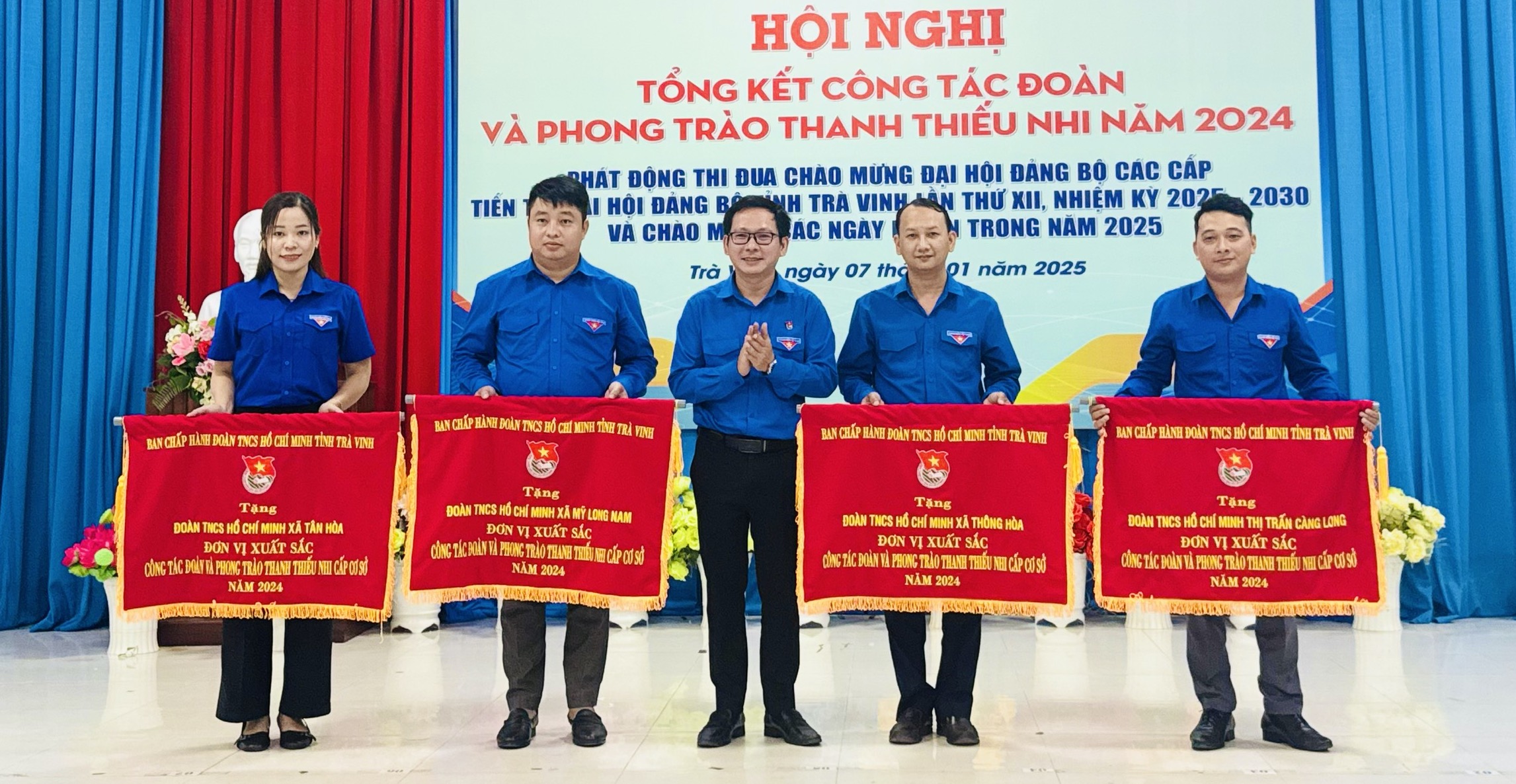 Đồng chí Trần Trí Cường, Bí thư Tỉnh đoàn trao cờ cho 04 đơn vị cấp cơ sở có thành tích xuất sắc trong năm 2024