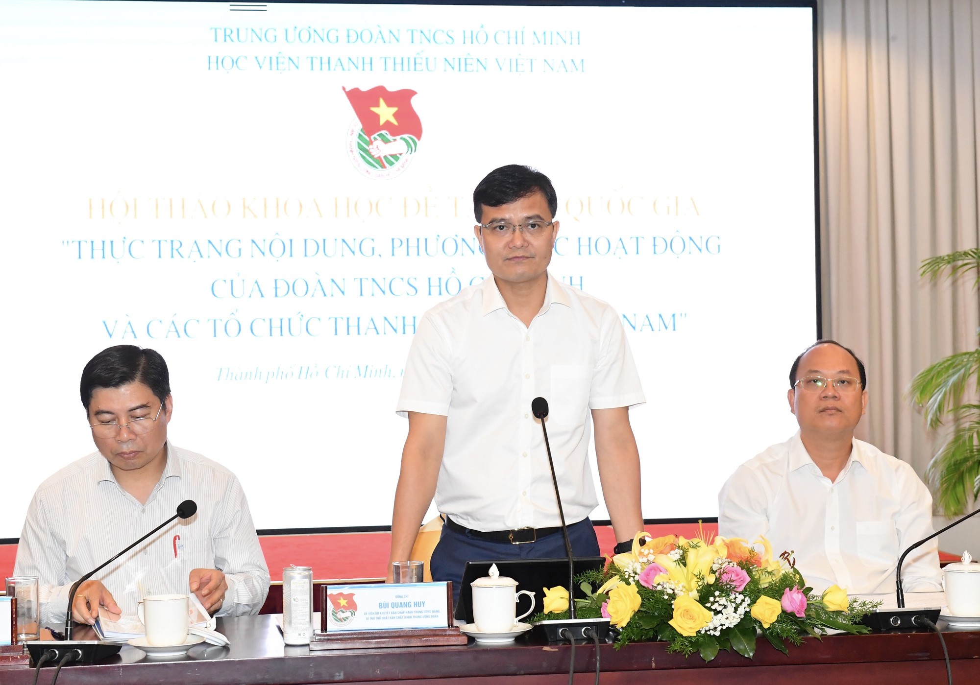Dự và chủ trì hội thảo có đồng chí Bùi Quang Huy, Ủy viên dự khuyết T.Ư Đảng, Bí thư thứ nhất T.Ư Đoàn, Chủ nhiệm đề tài khoa học cấp quốc gia; đồng chí Nguyễn Hồ Hải, Phó Bí thư Thành ủy TP.HCM; Tiến sĩ Nguyễn Hải Đăng, Giám đốc Học viện Thanh thiếu niên Việt Nam, cơ quan chủ trì đề án cấp quốc gia, thành viên ban biên soạn đề án; cùng đại diện các tỉnh, thành Đoàn…