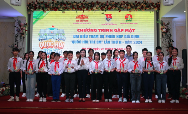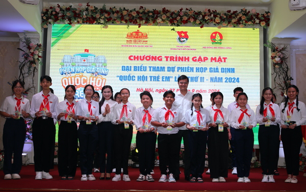 Tại chương trình, nhóm đại nhóm đại biểu Quốc hội trẻ, T.Ư Đoàn, Hội đồng Đội T.Ư trao tặng những món quà ý nghĩa đến 306 đại biểu tham gia phiên họp giả định Quốc hội trẻ em lần thứ II, năm 2024.