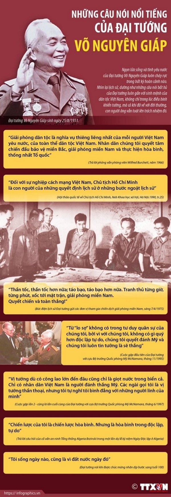 Nhìn lại lịch sử, dường như những câu nói bất hủ của Đại tướng luôn gắn với sinh mệnh của dân tộc Việt Nam, không chỉ trong lúc điều binh khiển tướng, mà cả khi đã về với đời thường, con người ông vẫn toát lên trách nhiệm đó.