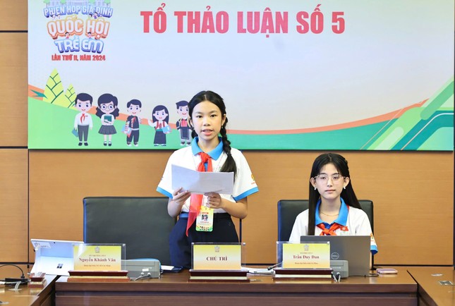 Nguyễn Khánh Vân điều hành tổ thảo luận số 5 tại phiên họp giả định Quốc hội trẻ em lần thứ II, năm 2024