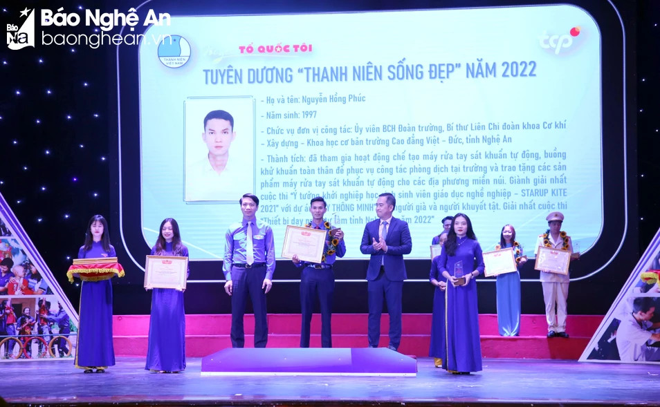 Cùng với thầy Phúc, nhiều giảng viên tiêu biểu khác như: cô Nguyễn Thị Huyền - Bí thư Đoàn Viện Công nghệ Hóa sinh Môi trường, Trường Đại học Vinh; cô Nguyễn Thị Lan Anh - Bí thư liên chi đoàn khoa Kinh tế - Quản trị kinh doanh, Trường Đại học Kinh tế Nghệ An; thầy Đào Tất Thắm - Bí thư Liên chi đoàn Khoa cơ khí Động lực, Trường Đại học sư phạm kỹ thuật Vinh... cũng là những giảng viên xuất sắc được Tỉnh đoàn biểu dương lần này. Họ đều là những cá nhân đã gặt hái được nhiều thành tích trong quá trình giảng dạy, hỗ trợ sinh viên, triển khai các hoạt động tình nguyện.