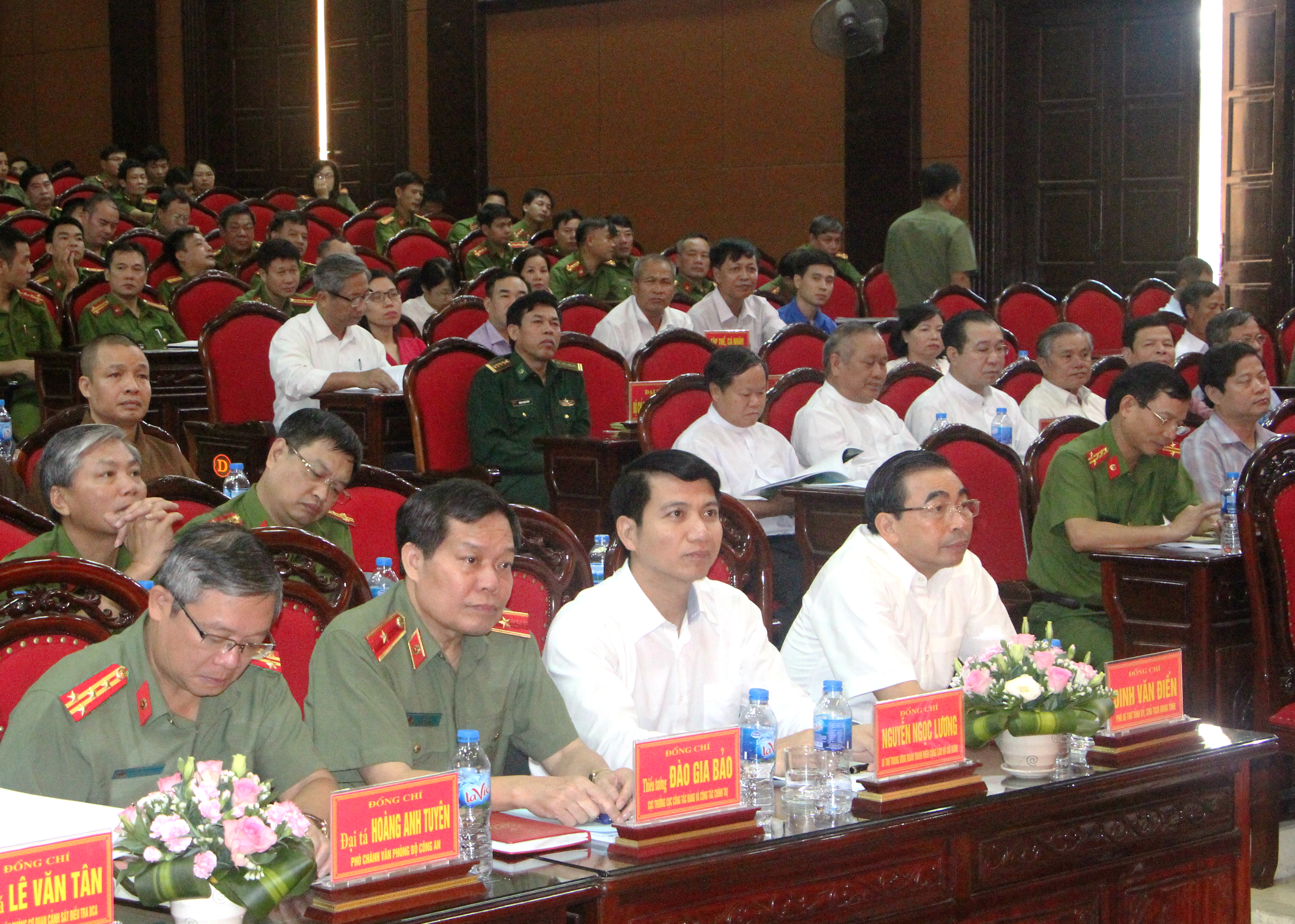 Tham dự hội nghị có các đồng chí: Đinh Văn Điến - Phó Bí thư Tỉnh ủy, Chủ tịch UBND tỉnh; Nguyễn Ngọc Lương - Bí thư Trung ương Đoàn, Chủ tịch Hội đồng Đội Trung ương; Tống Quang Thìn – Ủy viên BTV Tỉnh ủy, Phó Chủ tịch UBND tỉnh; đại diện lãnh đạo các Cục thuộc Bộ Công an, lãnh đạo các sở, ban, ngành, đoàn thể, các huyện, thành phố và một số chức sắc tôn giáo trên địa bàn tỉnh ..