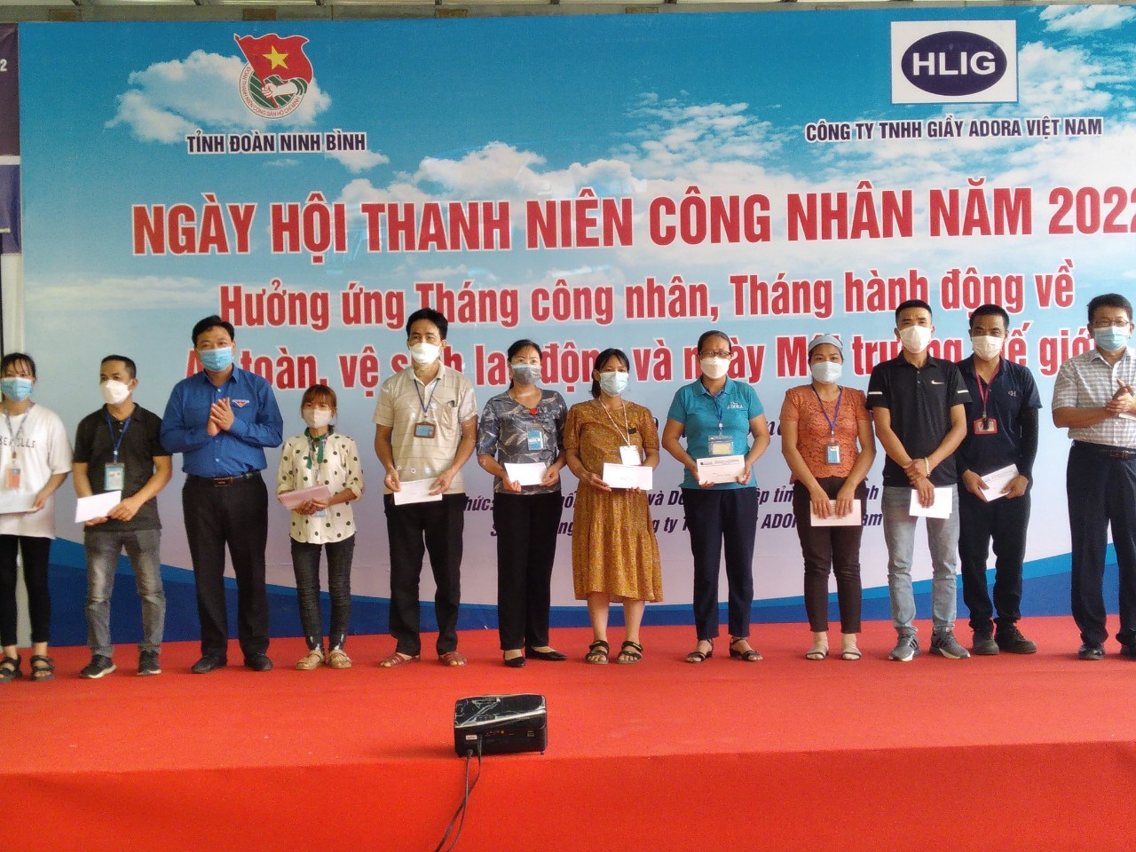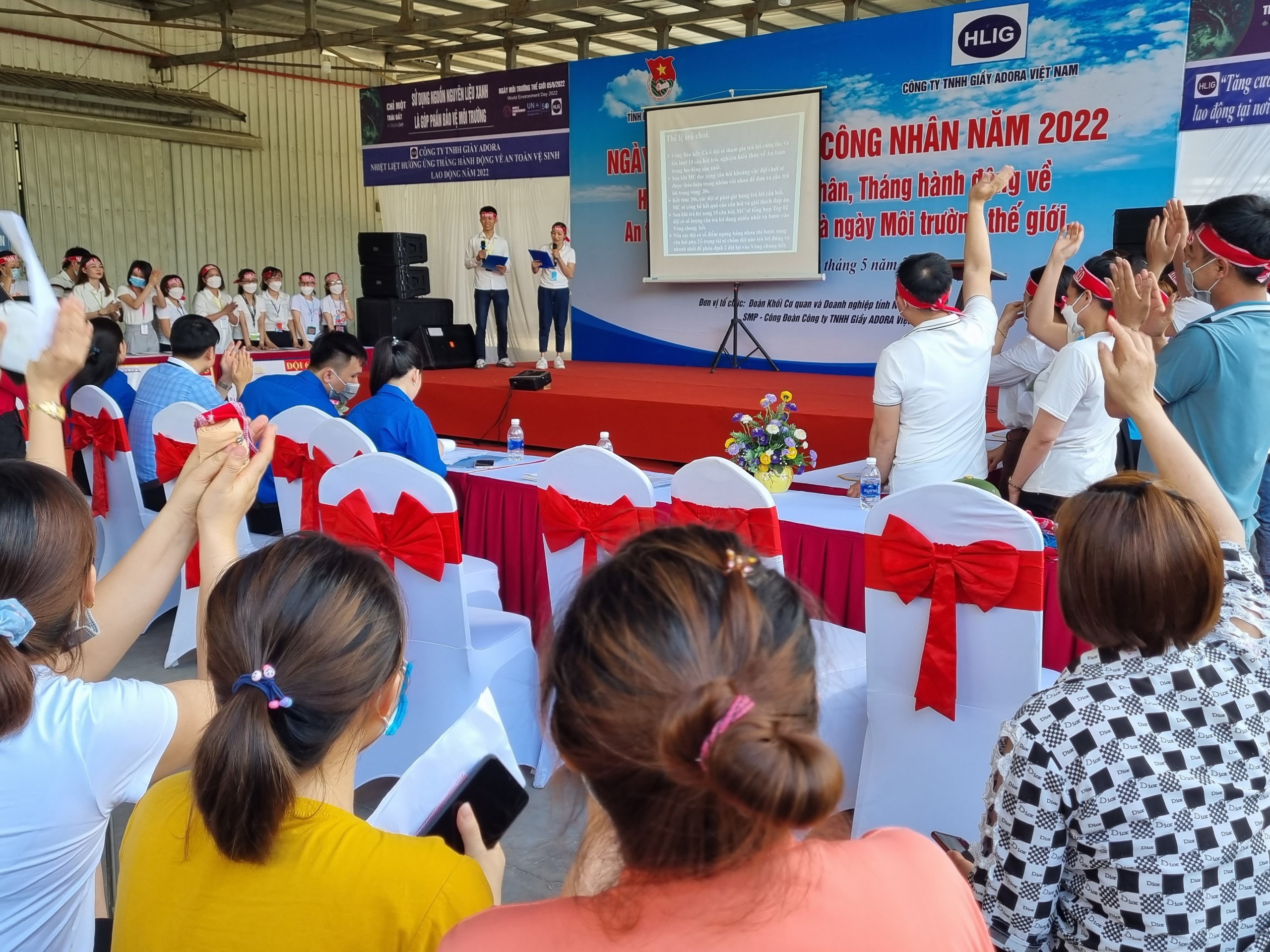 Tại chương trình, Ban Tổ chức đã tuyên truyền, nâng cao nhận thức về Luật thanh niên cho 200 thanh niên công nhân của công ty THHH giày Adora Việt Nam.