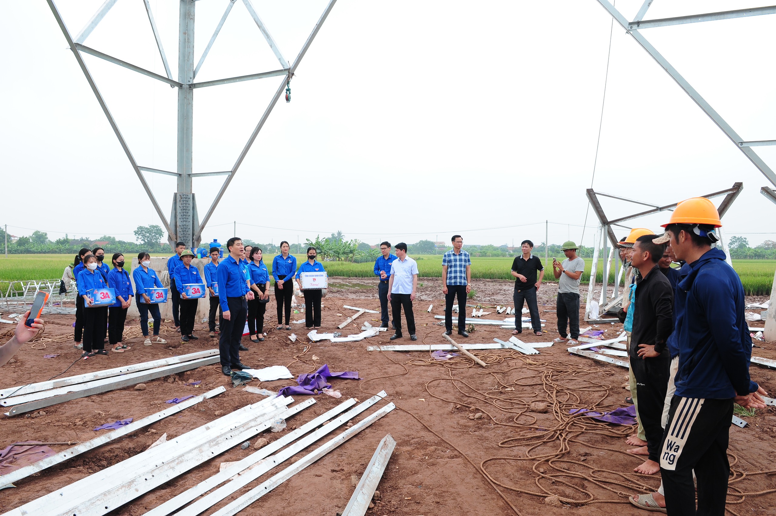 Đoàn đã đến thăm, tặng quà động viên các công nhân đang thi công tại vị trí cột điện cao thế số 35 của công trình đường dây 500kV mạch 3; kiểm tra các đội hình thanh niên tình nguyện của xã Quang Thiện và Kim Chính.