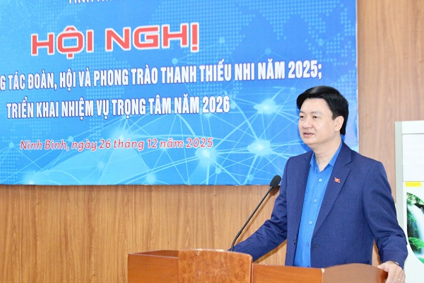 Phát biểu kết luận Hội nghị, đồng chí Bí thư Tỉnh đoàn ghi nhận và biểu dương những kết quả nổi bật của công tác Đoàn, Hội và phong trào thanh thiếu nhi trong năm 2025; đồng thời yêu cầu các cấp bộ Đoàn tiếp tục phát huy tinh thần đoàn kết, tiên phong, đổi mới, sáng tạo, xác định rõ các nhiệm vụ trọng tâm năm 2026. Trong đó, nhấn mạnh việc đẩy mạnh công tác chuyển đổi số trong hoạt động Đoàn, nâng cao hiệu quả quản lý, điều hành và tổ chức phong trào... góp phần xây dựng thế hệ thanh niên Ninh Bình giàu lý tưởng, bản lĩnh, khát vọng cống hiến, đáp ứng yêu cầu phát triển của tỉnh trong giai đoạn mới.