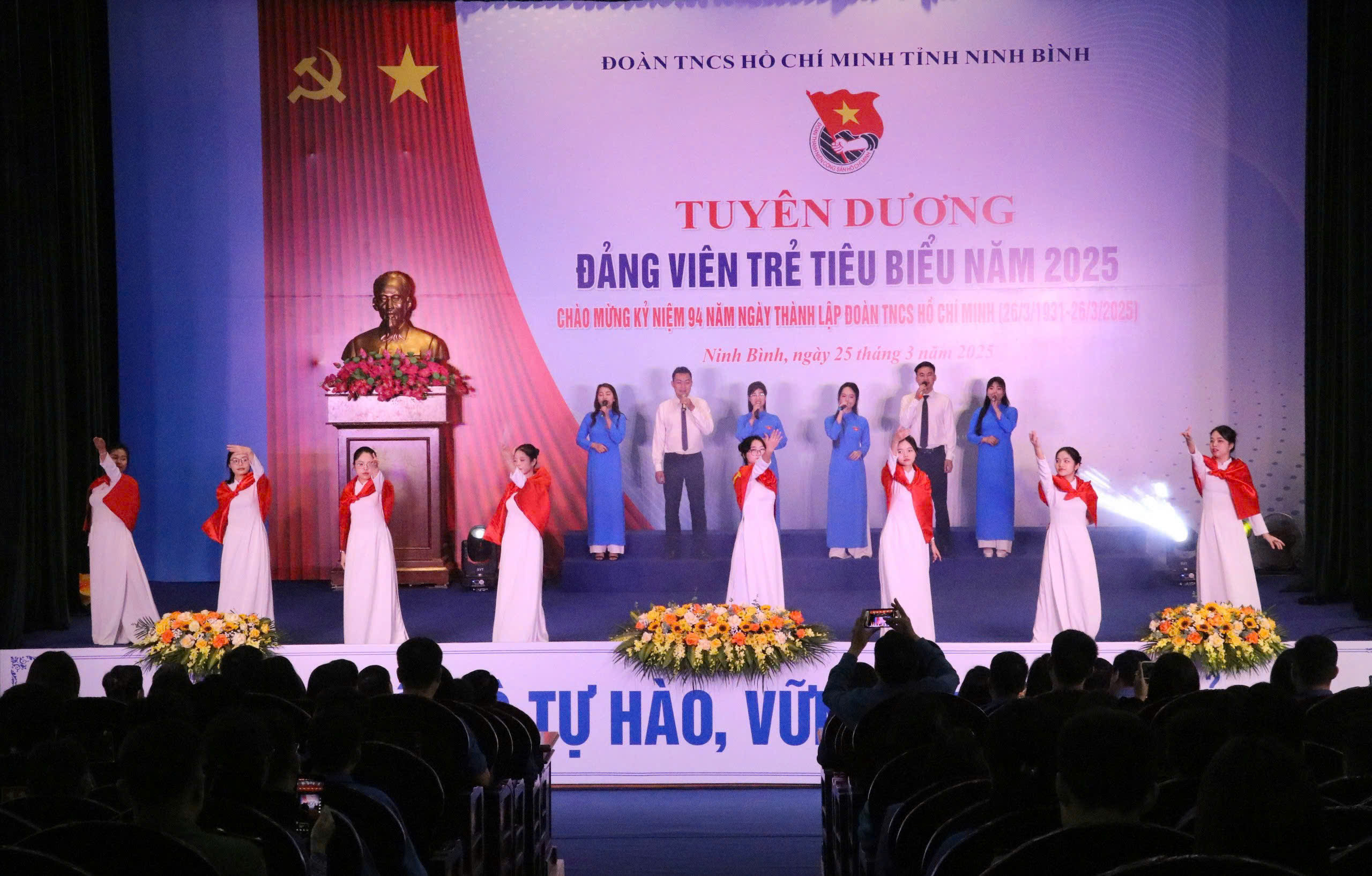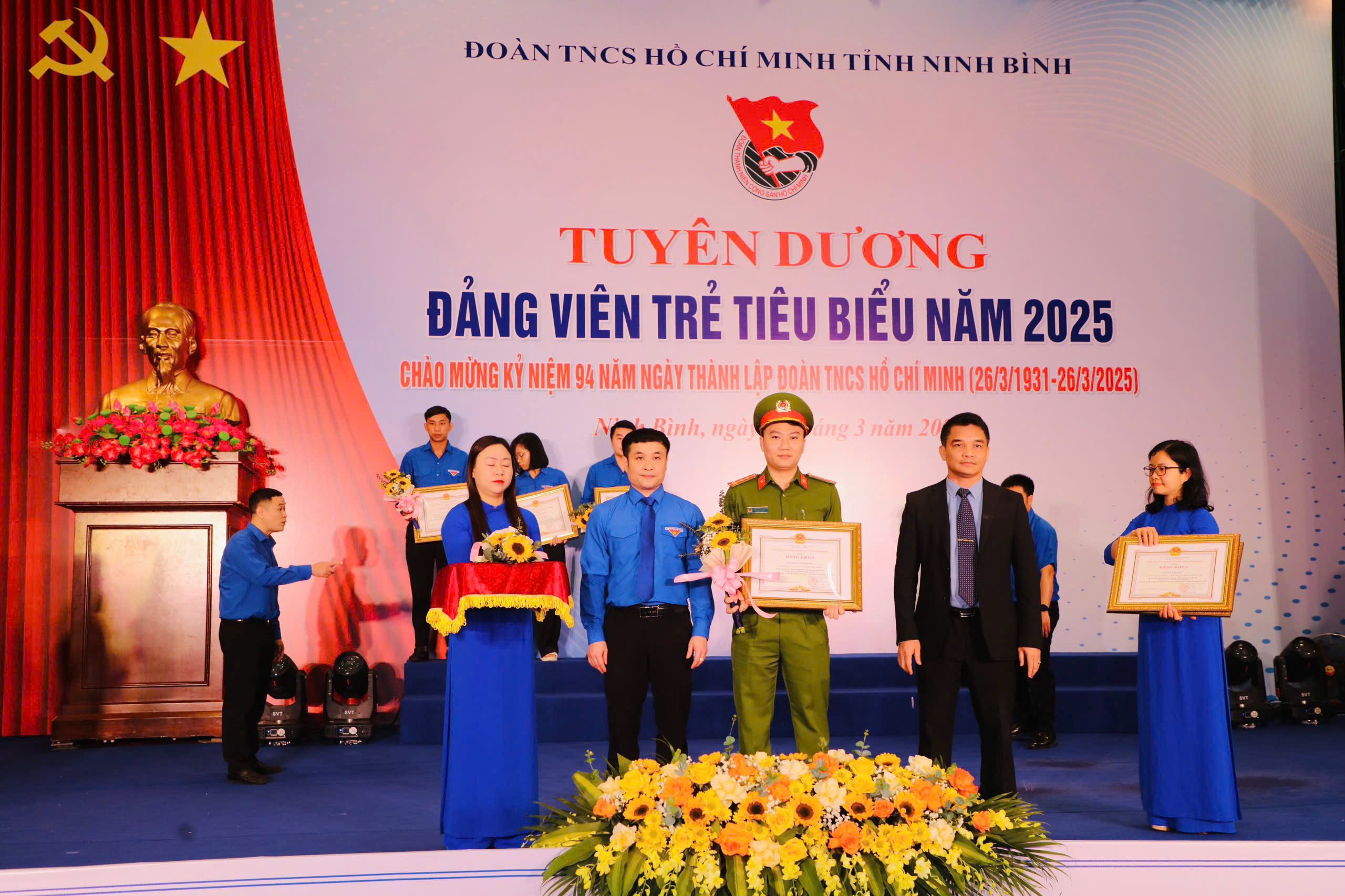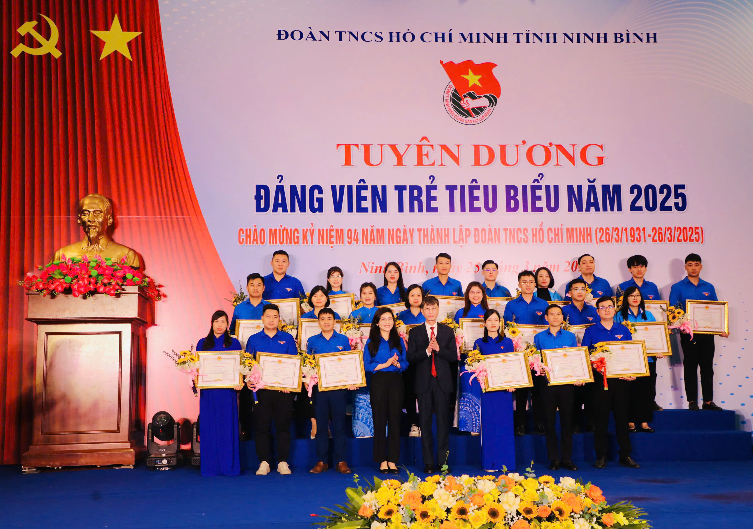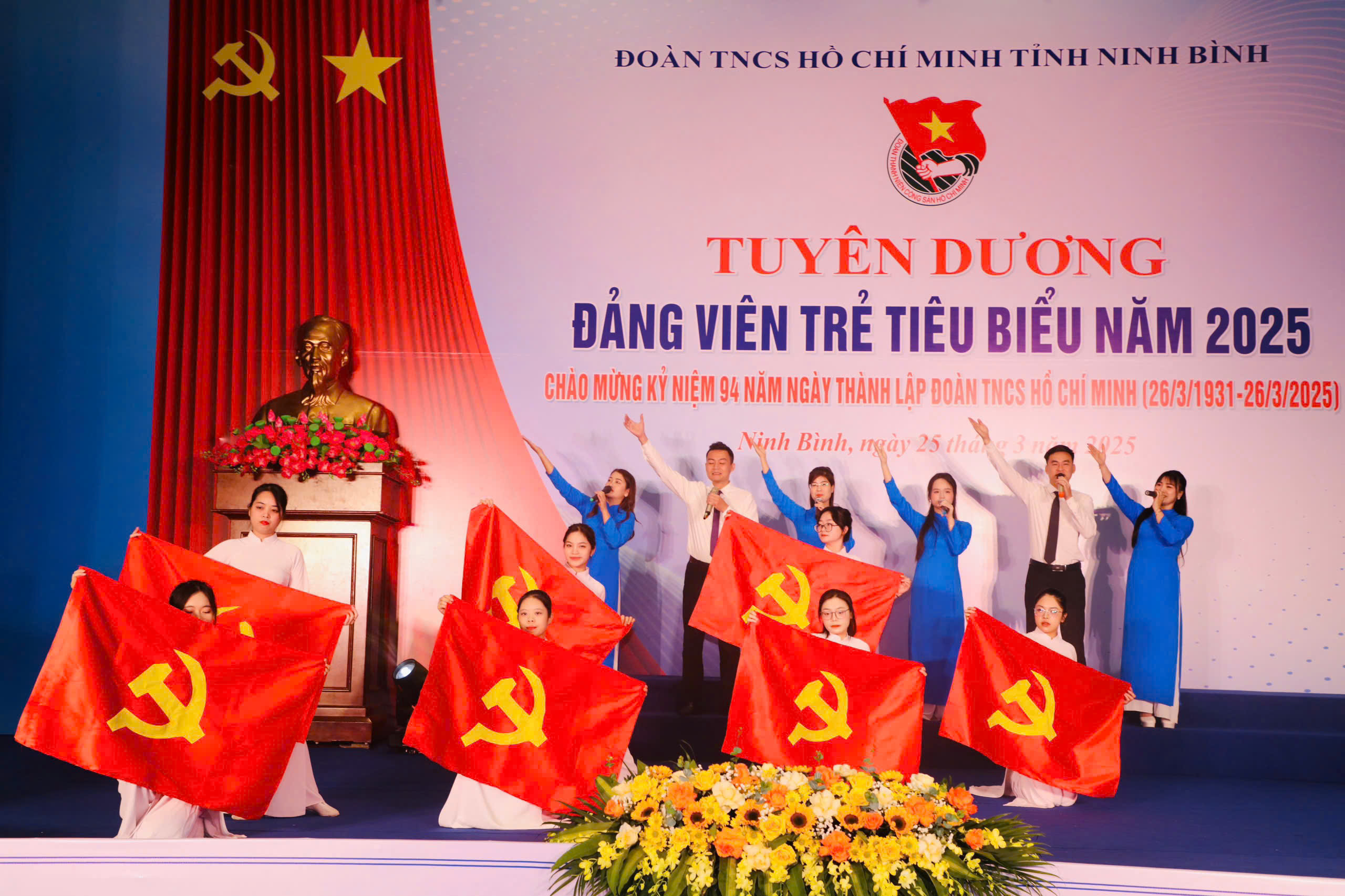 Tham dự chương trình có đồng chí Tô Văn Từ, Ủy viên Ban Thường vụ, Trưởng Ban Tổ chức Tỉnh ủy Ninh Bình; Đồng chí Hồ Hồng Nguyên, Uỷ viên Ban Thường vụ, Trưởng Ban Thanh niên Trường học Trung ương Đoàn, Phó Chủ tịch Thường trực Trung ương Hội Sinh viên Việt Nam; các đồng chí lãnh đạo đại diện các sở, ban, ngành trong tỉnh; đại diện lãnh đạo Ủy ban MTTQ Việt Nam tỉnh và các tổ chức chính trị - xã hội cấp tỉnh; Thường trực các huyện, thành ủy, Đảng ủy các cơ quan Đảng tỉnh, Đảng ủy UBND tỉnh; lãnh đạo Công an tỉnh, Bộ Chỉ huy Quân sự tỉnh, Bộ Chỉ huy Bộ đội Biên phòng tỉnh; đại diện lãnh đạo UBND thành phố Hoa Lư; Ban Giám hiệu các trường Đại học Hoa Lư, Cao đẳng Cơ giới Ninh Bình cùng với 95 đại biểu được tuyên dương là Đảng viên trẻ tiêu biểu năm 2025.