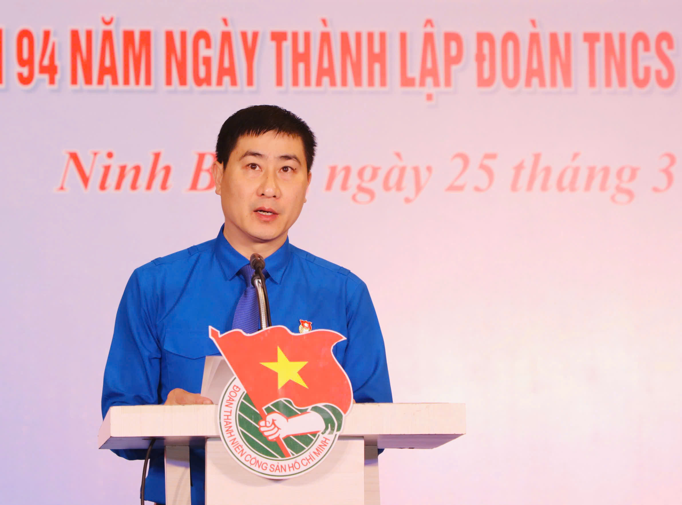 Đồng chí Trịnh Như Lâm, Ủy viên BCH Trung ương Đoàn, Bí thư Tỉnh đoàn Ninh Bình phát biểu tại chương trình