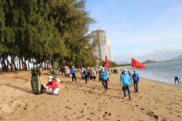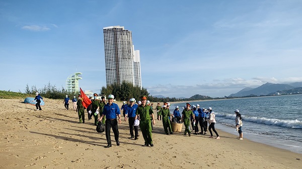 ĐVTN lực lượng vũ trang tham gia vệ sinh môi trường tại bãi biển Bình sơn Ninh Chữ