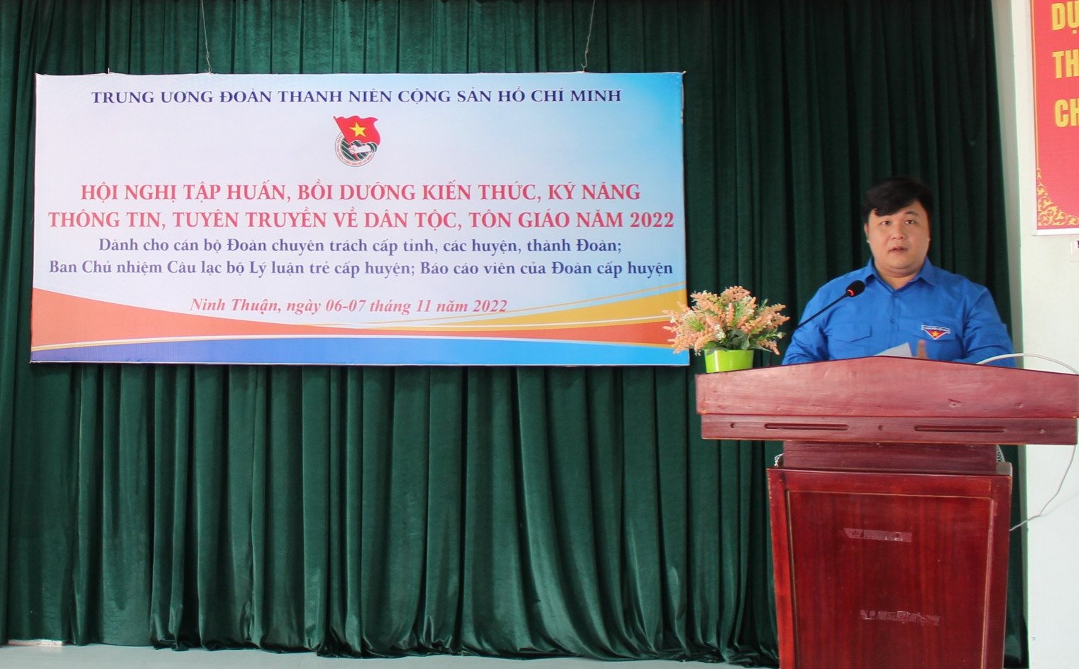 Phát biểu tại Hội nghị tập huấn, đồng chí Nguyễn Thái An - Ủy viên Thường vụ Trung ương Đoàn, Trưởng Ban Tuyên giáo Trung ương Đoàn mong muốn các đồng chí cán bộ Đoàn, báo cáo viên của Đoàn, Câu lạc bộ lý luận trẻ sẽ phát huy và sử dụng tốt những thông tin, kiến thức được truyền đạt để có giải pháp đổi mới nội dung, phương pháp thông tin, tuyên truyền về dân tộc, tôn giáo; đồng thời tích cực tham gia phổ biến, tuyên truyền cho cán bộ đoàn cấp xã, đoàn viên thanh niên tại địa phương.