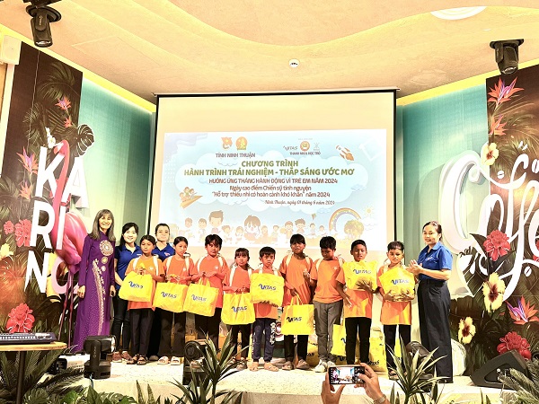 Trong đó, cấp tỉnh tổ chức Chương trình "Hành trình trải nghiệm - Thắp sáng ước mơ" năm 2024 với các nội dung: giáo dục lý tưởng cách mạng, đạo đức, lối sống văn hóa và trải nghiệm thực tế tại Bảo tàng tỉnh; Vườn thú ZooDoo Phan Rang, khu vui chơi hiện đại cho trẻ em Pippy Kids, hướng dẫn mua sắm tại siêu thị, giao lưu văn hóa văn nghệ và tặng quà (Ba lô, nón, dép, áo thu, khăn tắm, bánh kẹo, sữa... và hàng hóa do các em mua sắm tại siêu thị) cho 30 em học sinh dân tộc thiểu số, vượt khó, học giỏi ở các xã Lâm Sơn, Ma Nới và Mỹ Sơn, huyện Ninh Sơn; Tổ chức hoạt động an sinh xã hội năm 2024 tại xã Phước Trung, huyện Bác Ái với các nội dung: trao 100 suất quà cho các hộ gia đình có trẻ em thuộc diện hộ nghèo, gia đình có hoàn cảnh khó khăn, gia đình chính sách và 100 suất quà cho các em học sinh, thiếu nhi có hoàn cảnh khó khăn. Đồng thời, trao tặng 400 phần quà cho thiếu nhi xã Phước Thành, huyện Bác Ái theo chương trình của Ủy ban nhân dân tỉnh.