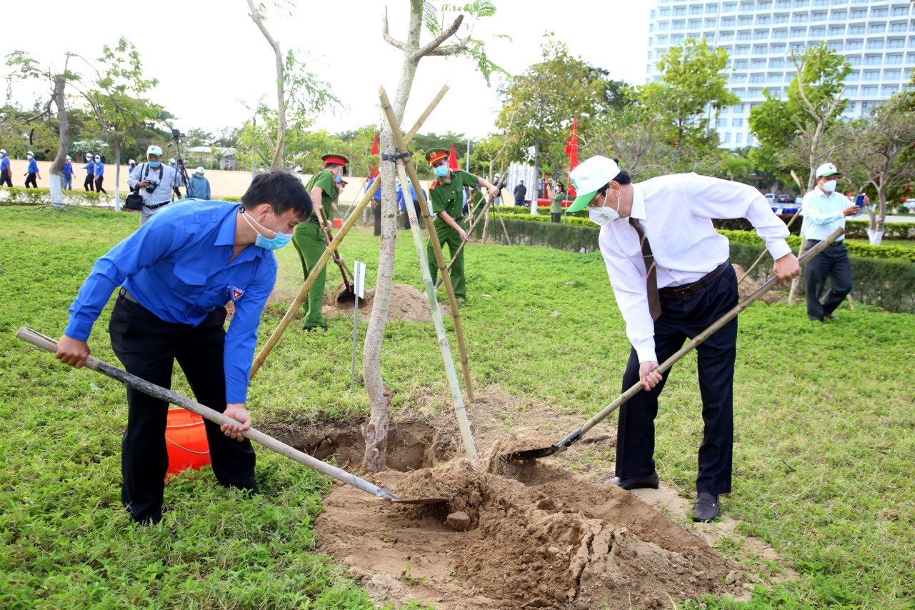 Ngay sau Lễ phát động, đồng chí Nguyễn Đức Thanh, Ủy viên BCH TW Đảng, Bí thư Tỉnh ủy và các đồng chí lãnh đạo tỉnh tham gia trồng 24 cây xanh lưu niệm tại Công viên biển Bình Sơn; đoàn viên, thanh niên tham gia cùng lãnh đạo tỉnh trồng cây; ra quân chăm sóc cây xanh, vệ sinh tại khu vực Công viên và bãi biển Bình Sơn - Ninh Chữ.