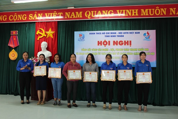 Dịp này, Ban Thường vụ Tỉnh Đoàn đã tặng cờ thi đua cho 05 đơn vị Đoàn cấp huyện, 11 đơn vị Đoàn cấp cơ sở, Bằng khen công tác năm cho 06 đơn vị Đoàn cấp huyện, 07 đơn vị cấp cơ sở và 15 cá nhân; tặng Bằng khen cho 01 tập thể, 11 cá nhân có thành tích xuất sắc trong công tác nhận ủy thác vốn vay từ Ngân hàng chính sách xã hội; tặng Giấy chứng nhận 04 công trình thanh niên tiêu biểu cấp tỉnh; tặng Giấy chứng nhận cho 01 tập thể, 06 cá nhân có thành tích trong thực hiện mô hình “Chuyện người tốt, việc tốt của thanh thiếu nhi tỉnh Ninh Thuận” quý IV/2022; Ủy ban Hội LHTN Việt Nam tỉnh tặng Cờ thi đua Đơn vị xuất sắc dẫn đầu trong công tác Hội và phong trào thanh niên cho Ủy ban Hội LHTN Việt Nam huyện Ninh Sơn; tặng cờ thi đua Đơn vị xuất sắc trong công tác Hội và phong trào thanh niên cho 04 đơn vị và Bằng khen Đơn vị tiên tiến trong công tác Hội và phong trào thanh niên cho 02 đơn vị, tặng Bằng khen công tác năm cho 02 tập thể, 16 cá nhân ở cơ sở.