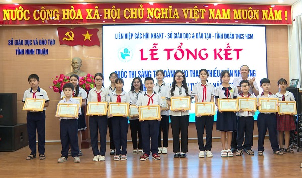 Bên cạnh đó, Ban Tổ chức đã trao tặng Giấy khen và tiền thưởng cho 03 tập thể có thành tích xuất sắc trong tuyên truyền, vận động tham gia Cuộc thi: Tập thể trường THPT chuyên Lê Quý Đôn, Tập thể trường THPT Trường Chinh và Tập thể Phòng Giáo dục TP. Phan Rang – Tháp Chàm đã thực hiện xuất sắc công tác vận động và chỉ đạo các trường Tiểu học, Trung học cơ sở tham gia Cuộc thi với 39 mô hình, sản thẩm dự thi và đạt 08 giải thưởng (03 giải ba và 05 giải khuyến khích).