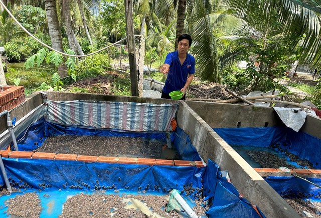 Bình quân mỗi tháng, cơ sở của anh Chung cung cấp ra thị trường từ 25.000 - 30.000 con ếch giống. Giá ếch giống từ 1.000 - 1.300 đồng/con. Sau khi trừ đi chi phí, anh có lãi khoảng 25 triệu đồng/tháng.