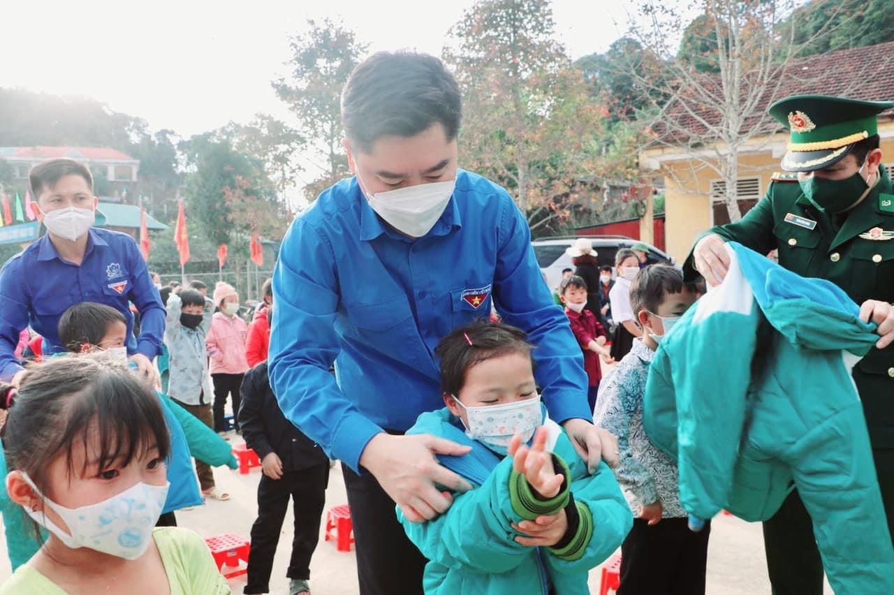 Tặng quà cho các em học sinh có hoàn cảnh khó khăn tại chương trình “Xuân ấm áp – Tết sẻ chia” năm 2022 tại huyện vùng cao Kỳ Sơn. Ảnh: Tỉnh đoàn Nghệ An