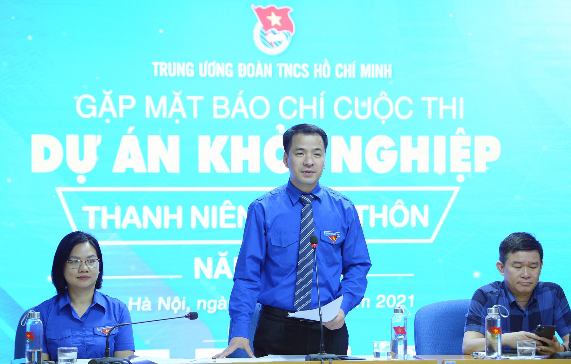 Bí thư Trung ương Đoàn Ngô Văn Cương phát biểu trao đổi tại họp báo