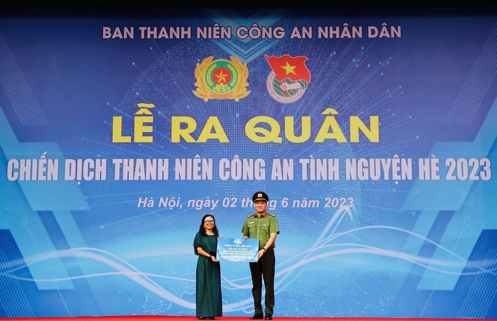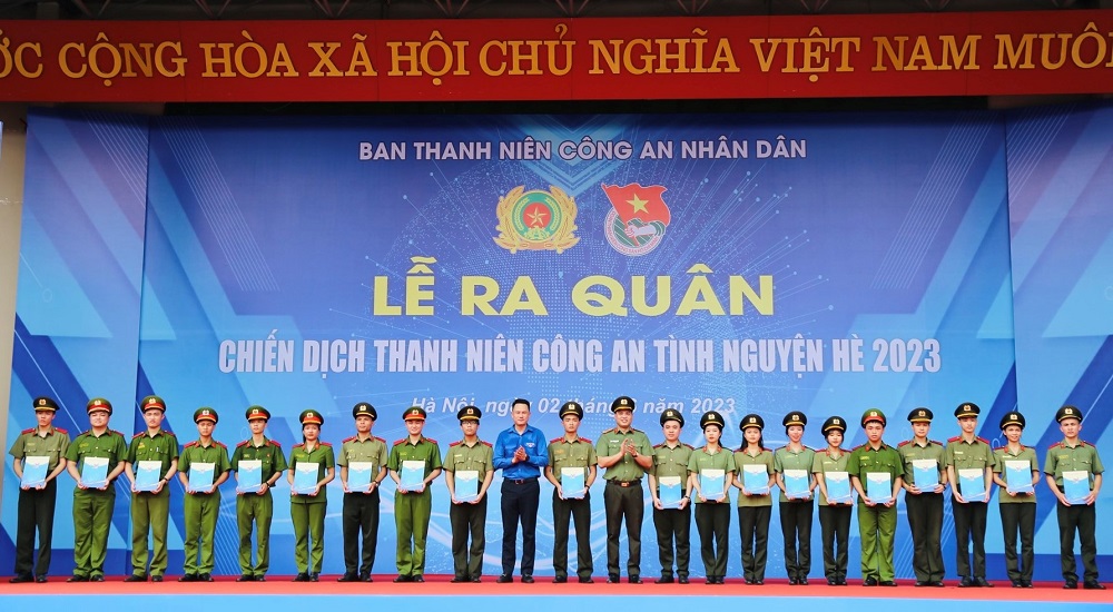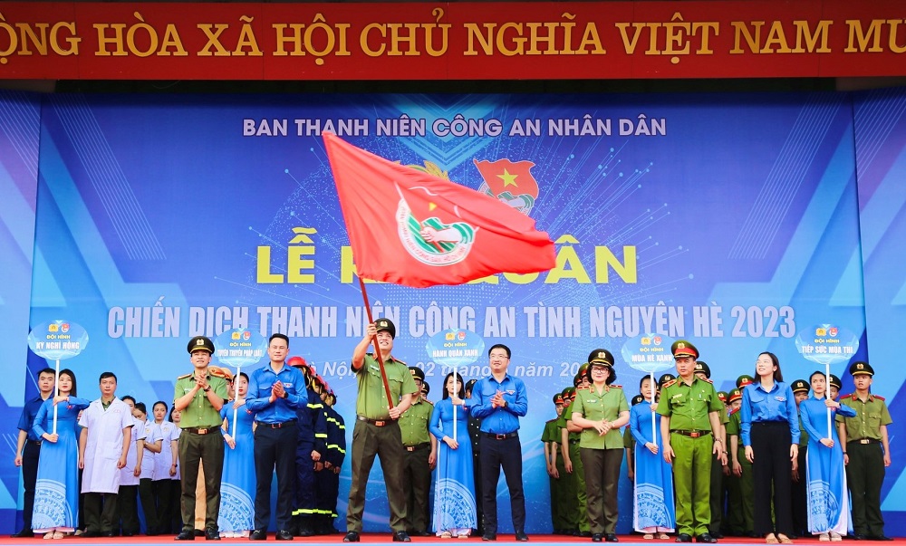 Bí thư Trung ương Đoàn Nguyễn Tường Lâm trao cờ lệnh xuất quân Chiến dịch Thanh niên Công an tình nguyện Hè năm 2023