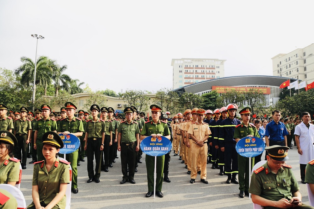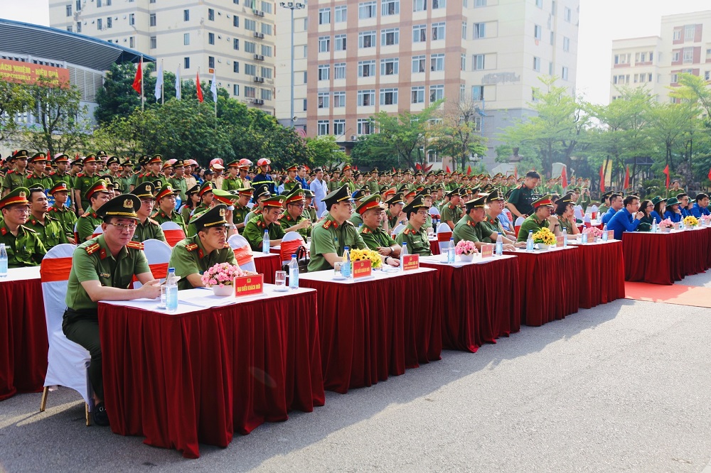 Các đồng chí lãnh đạo cùng tuổi trẻ CAND tham dự Lễ ra quân
