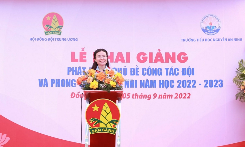 Phát động chủ đề công tác Đội năm học 2022 - 2023, đồng chí Nguyễn Phạm Duy Trang cho biết, năm học 2022 - 2023 diễn ra trong thời điểm tổ chức Đội và các em đội viên, thiếu nhi cả nước thi đua chào mừng nhiều sự kiện lớn của đất nước và tổ chức Đoàn, Hội, Đội như: Đại hội Đoàn toàn quốc lần thứ XII, kỷ niệm 40 năm ngày nhà giáo Việt Nam, kỷ niệm 60 năm phong trào “Nghìn việc tốt”...