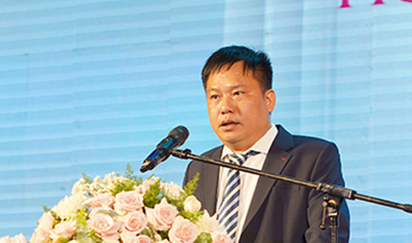Đồng chí Nguyễn Kim Quy, Uỷ viên BTV Trung ương Đoàn, Phó Chủ tịch Thường trực Trung ương Hội LHTN Việt Nam tặng hoa cho đơn vị Công ty Cổ phần Tập đoàn FCF Group.