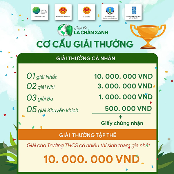 ĐTN: Ngày 6/6, Chương trình Phát triển Liên Hợp Quốc (UNDP) phối hợp với Bộ Giáo dục và Đào tạo, Tổng cục Phòng, Chống thiên tai, Bộ Nông nghiệp và Phát triển nông thôn tổ chức cuộc thi 'Lá chắn xanh - Tìm hiểu về Phòng, chống thiên tai và Biến đổi khí hậu'.