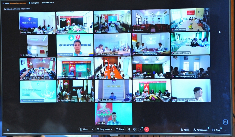 Buổi gặp mặt có sự tham dự của đồng chí Nguyễn Minh Triết - Bí thư T.Ư Đoàn, Chủ tịch T.Ư Hội LHTN Việt Nam và được kết nối trực tuyến với Hội Sinh viên nhiều tỉnh, thành phố, các trường Đại học, Cao đẳng và 03 Hội Sinh viên Việt Nam ở nước ngoài.