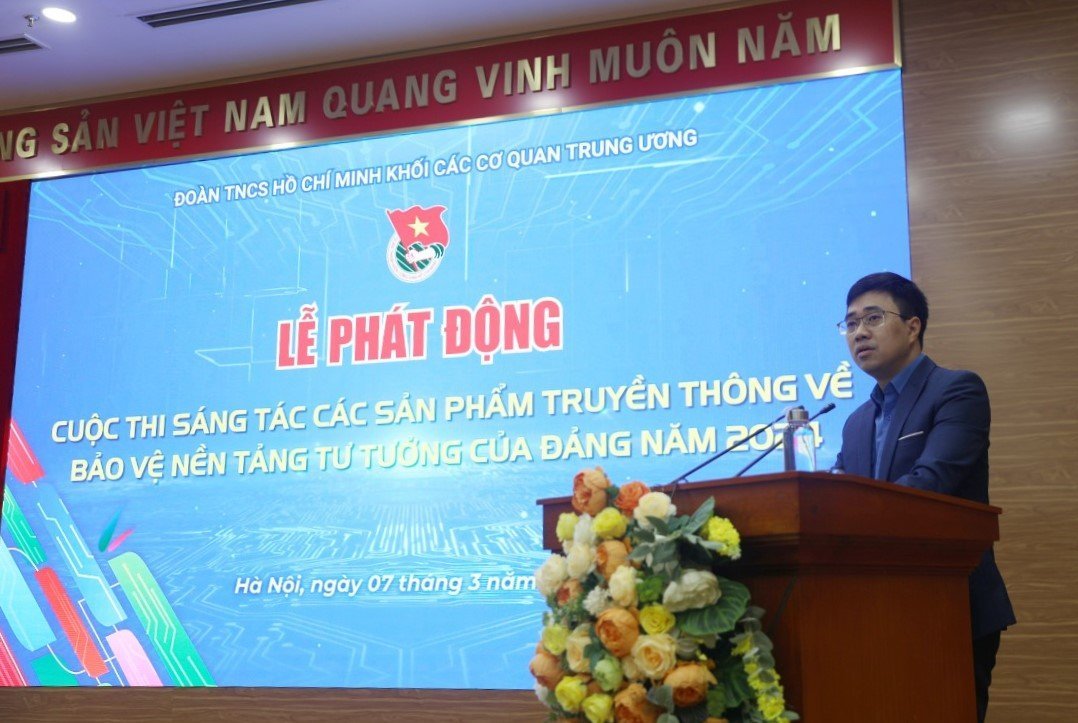 Bí thư Đoàn Khối các cơ quan Trung ương Bùi Hoàng Tùng phát biểu tại Lễ phát động Cuộc thi