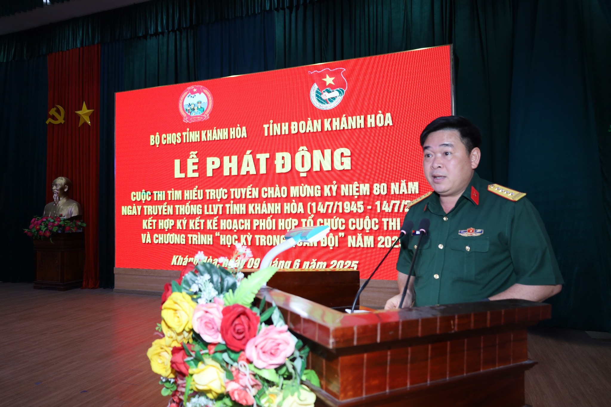 Phát biểu tại buổi lễ, đồng chí Đại tá Đinh Văn Hưng đã chính thức phát động Cuộc thi, nhấn mạnh ý nghĩa lịch sử to lớn của chặng đường 80 năm xây dựng, chiến đấu và trưởng thành của lực lượng vũ trang tỉnh. Đồng chí kêu gọi toàn thể cán bộ, đoàn viên, thanh niên tích cực tham gia, biến cuộc thi thành một đợt sinh hoạt chính trị sâu rộng, ý nghĩa.