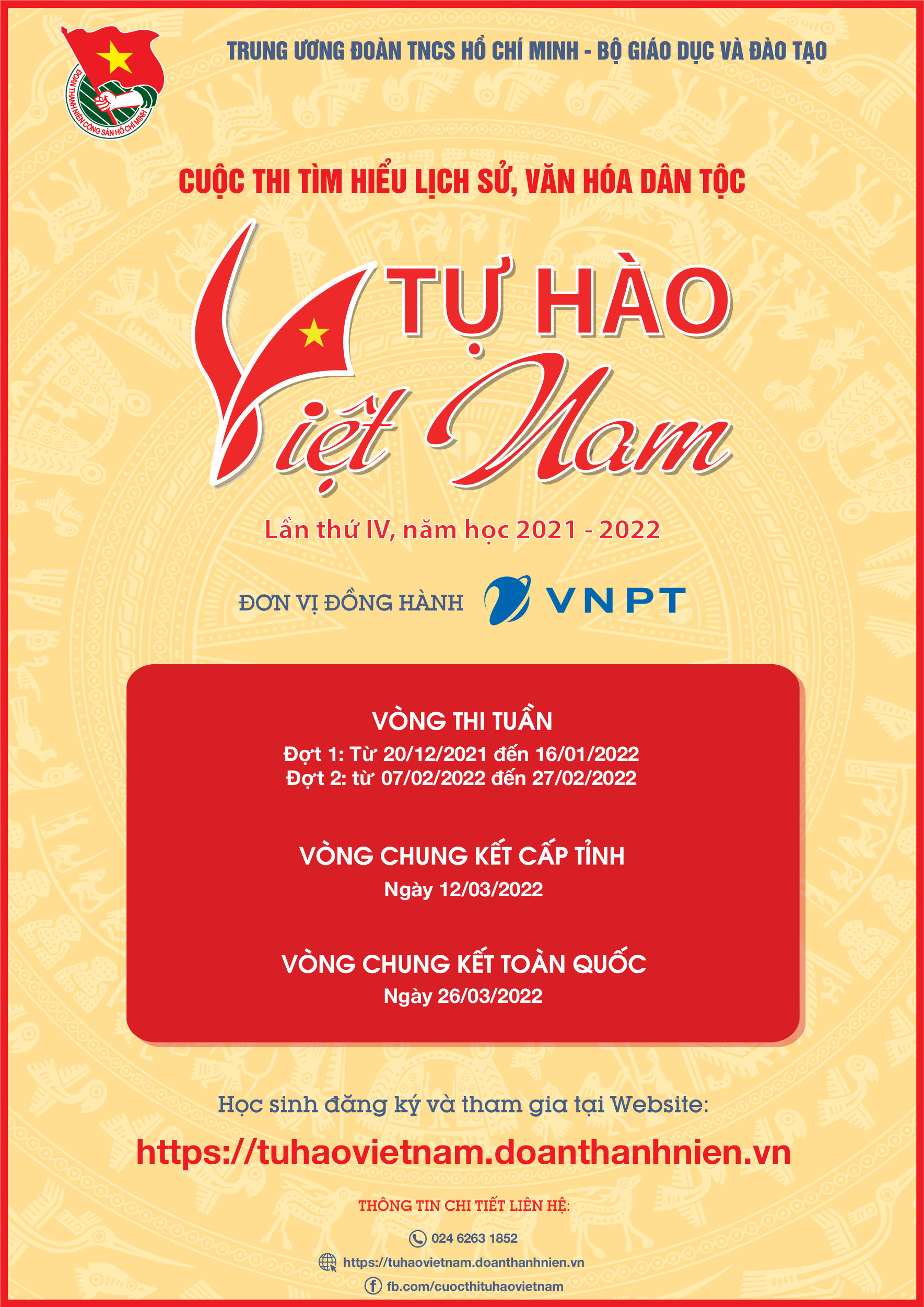 Trung ương Đoàn TNCS Hồ Chí Minh và Bộ Giáo dục và Đào tạo phối hợp tổ chức Cuộc thi tìm hiểu lịch sử, văn hóa dân tộc “Tự hào Việt Nam” lần thứ IV, năm học 2021 - 2022 dành cho đối tượng là học sinh đang theo học tại các trường Trung học phổ thông (THPT) và Trung tâm giáo dục nghề nghiệp - giáo dục thường xuyên (TTGDNN- GDTX) trên cả nước.
