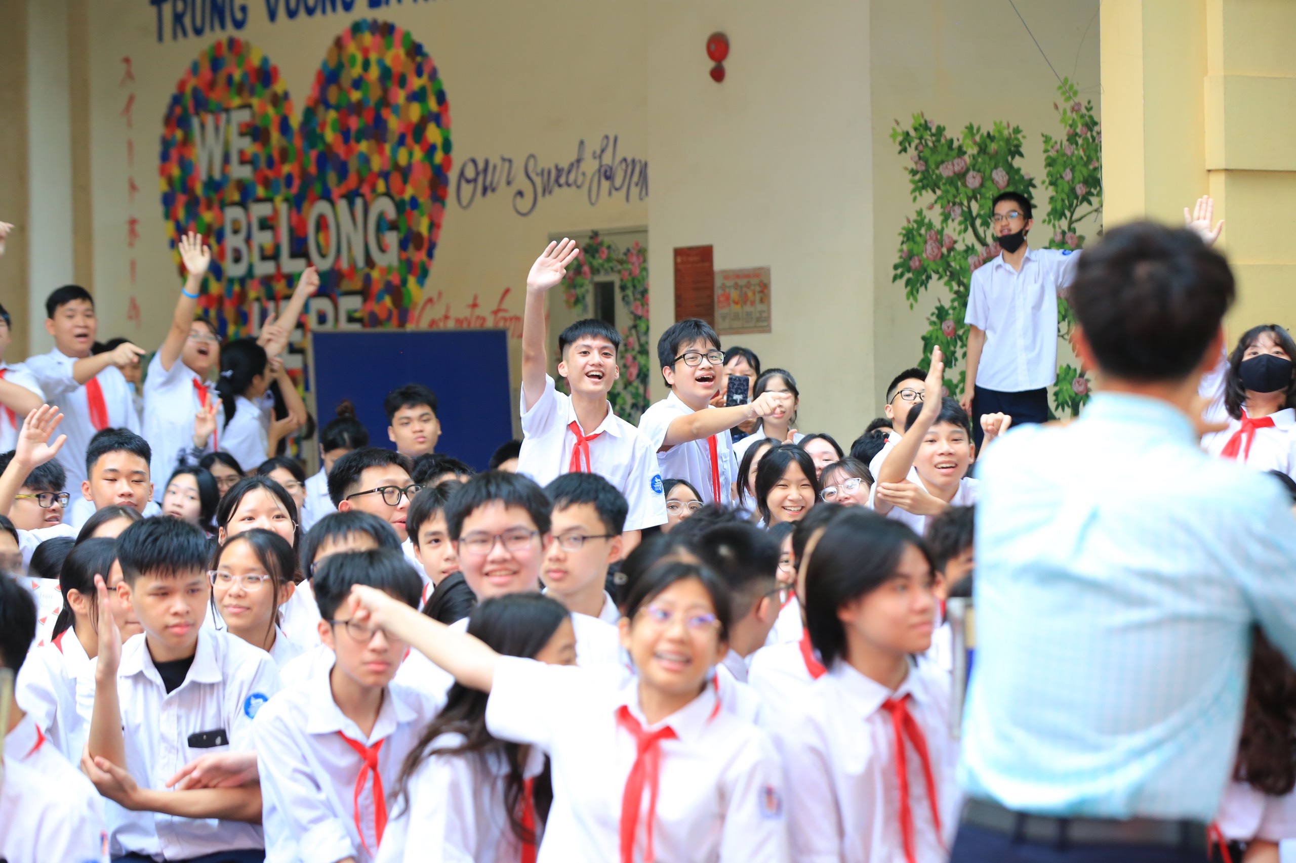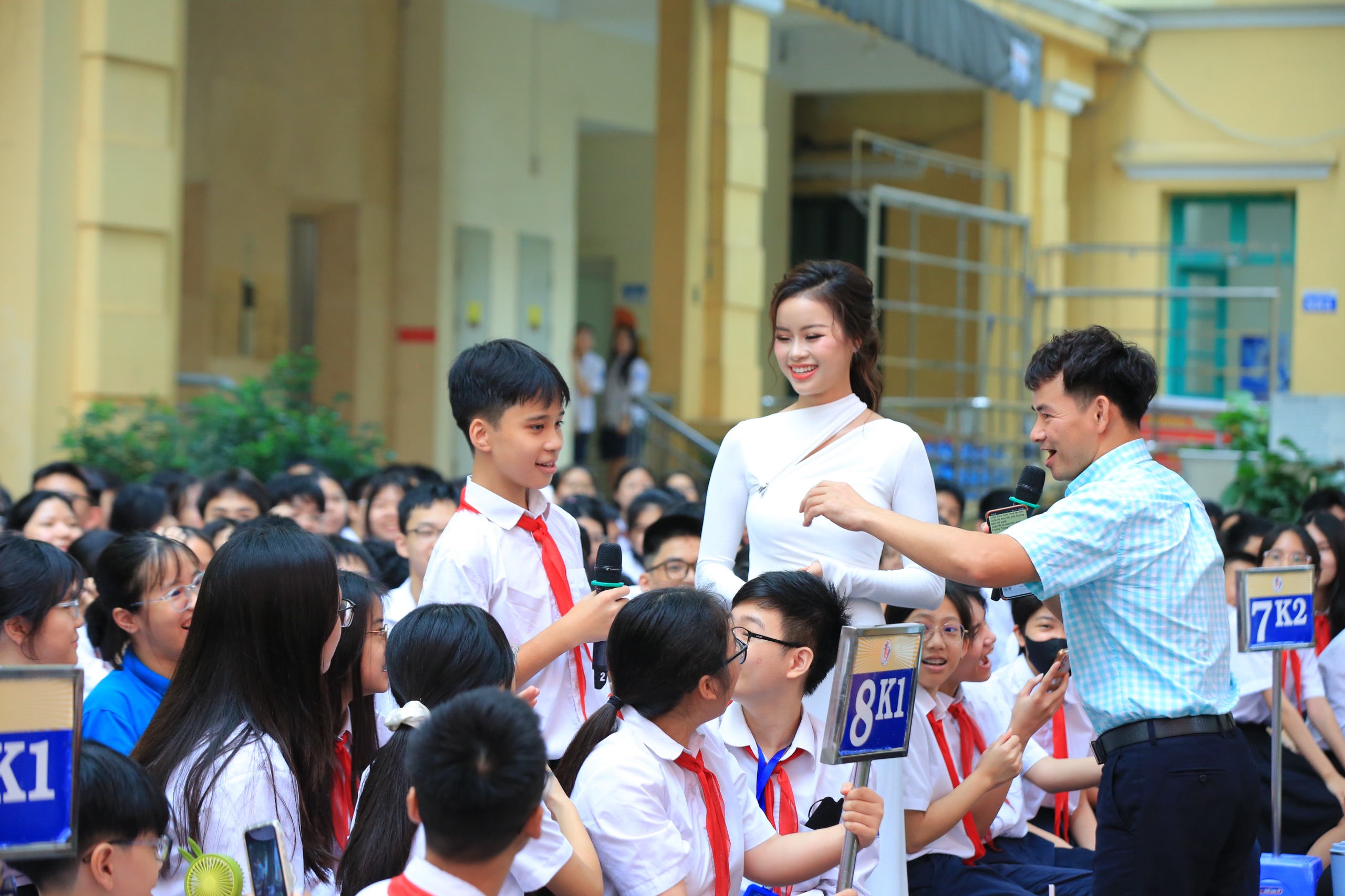 Nghệ sĩ nhân dân Xuân Bắc, Giám đốc Nhà hát kịch Việt Nam và Á hậu 1 Hoa hậu Thế giới Việt Nam 2023 Đào Hiền giao lưu cùng các em học sinh tại lễ phát động