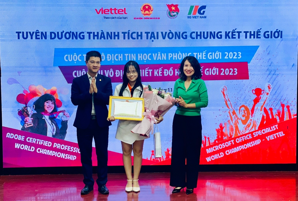 Trong khuôn khổ chương trình, Ban tổ chức đã tuyên dương các thành viên đội tuyển Việt Nam đạt thành tích cao tại Vòng chung kết Cuộc thi Tin học văn phòng (MOS) và Thiết kế đồ họa (ACP) thế giới mùa giải 2023; trao tặng bằng khen của Bộ Giáo dục và Đào tạo cho các thí sinh đạt huy chương thế giới gồm: em Nguyễn Thị Thanh Trúc - Huy chương Bạc thế giới MOS Excel 2016; em Đặng Thị Minh Anh - Huy chương Đồng thế giới MOS Word 2016; em Hoàng Thuỳ Linh - Huy chương Đồng thế giới MOS Word 2019.
