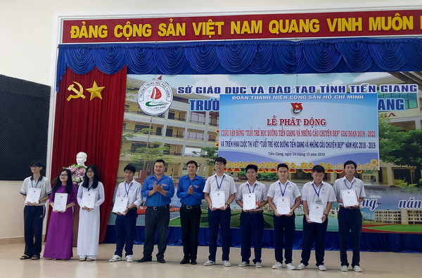Web.ĐTN: Tại trường THPT Chuyên Tiền Giang, Tỉnh Đoàn đã tổ chức Lễ phát động Cuộc vận động “Tuổi trẻ học đường Tiền Giang và những câu chuyện đẹp” giai đoạn 2018 - 2022 và triển khai cuộc thi viết “Tuổi trẻ học đường Tiền Giang và những câu chuyện đẹp” năm học 2018 - 2019 với sự tham gia của hơn 300 đại biểu là đoàn viên, học sinh.