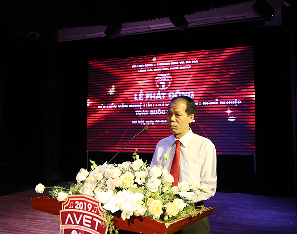 Ông Đỗ Năng Khánh, Phó Tổng Cục trưởng Tổng cục Giáo dục nghề nghiệp - Bộ LĐTB&XH, Trưởng Ban tổ chức phát biểu phát động Hội diễn