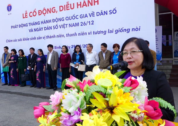 Phó Tổng cục trưởng Tổng cục DS-KHHGĐ (Bộ Y tế) Nguyễn Thị Ngọc Lan phát biểu khai mạc buổi lễ phát động