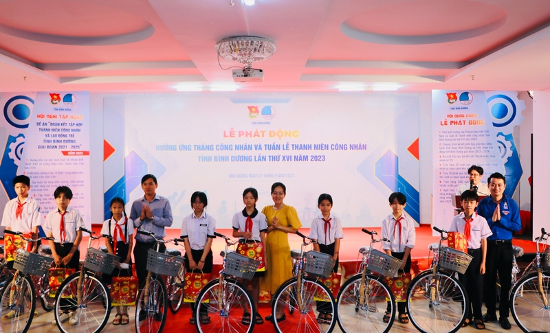 Ngoài ra, Ban Thường vụ Tỉnh đoàn đã trao tặng 20 phần quà cho thanh niên công nhân có hoàn cảnh khó khăn trên địa bàn tỉnh với tổng trị giá 20 triệu đồng; trao tặng 10 suất quà tặng và 10 chiếc xe đạp cho học sinh có hoàn cảnh khó khăn trên địa bàn thị xã Bến Cát với tổng trị giá hơn 15 triệu đồng. Công ty TNHH Bệnh viện Đa khoa Tín Đức trao tặng 200 suất khám bệnh tổng quát, phát thuốc miễn phí cho thanh niên công nhân với tổng trị giá 300 triệu đồng cho Trung tâm Hỗ trợ Thanh niên công nhân và lao động trẻ.
