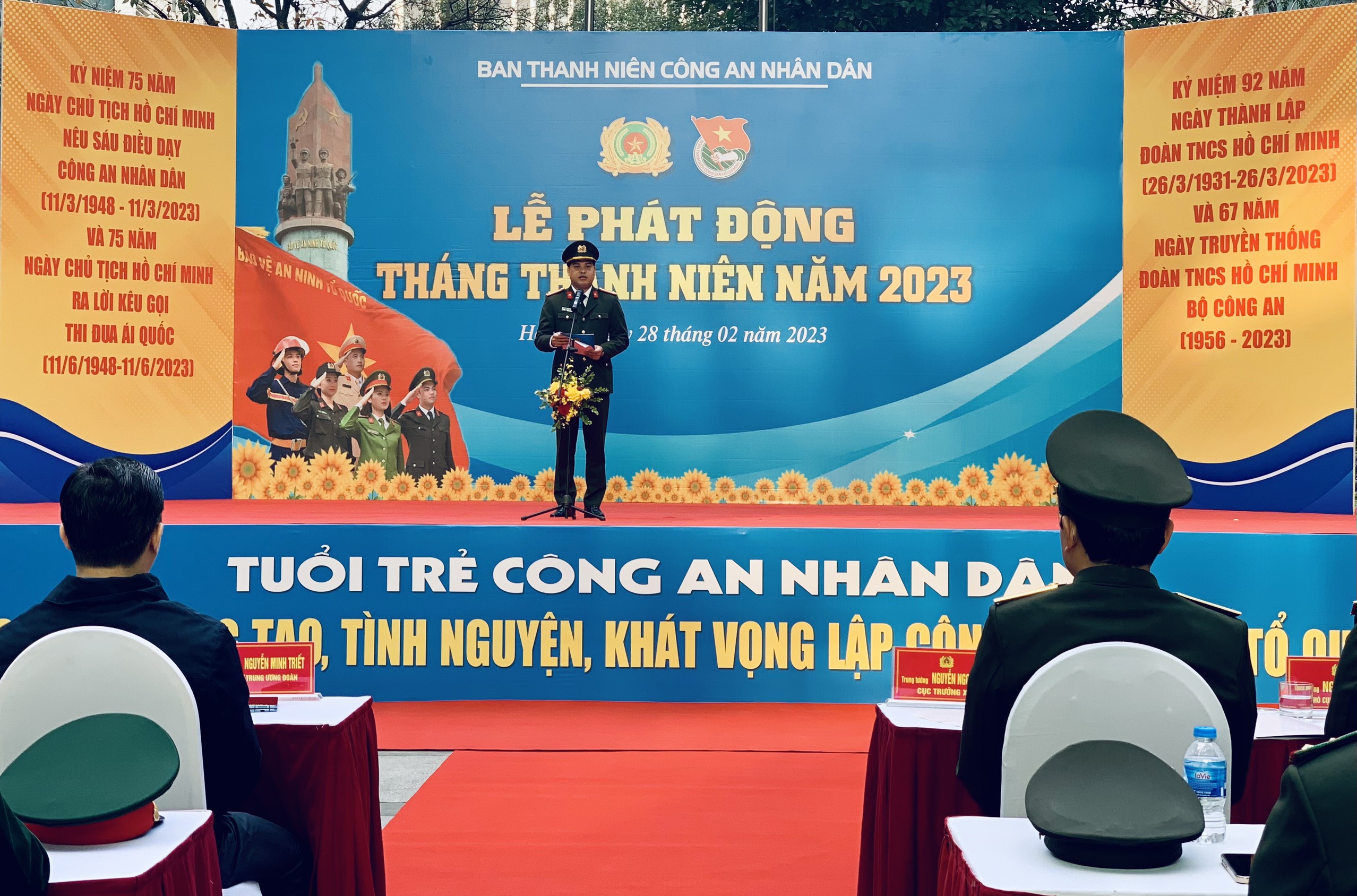 Phát biểu phát động Tháng thanh niên, Trung tá Đồng Đức Vũ- Trưởng ban Thanh niên Công an nhân dân kêu gọi tất cả cán bộ, đoàn viên thanh niên CAND hãy phát huy cao độ tinh thần xung kích, sáng tạo, tình nguyện của tuổi trẻ, tổ chức nhiều hoạt động thiết thực, hiệu quả, mang lại nhiều giá trị vật chất, tinh thần to lớn cho cộng đồng, xã hội và cơ quan, đơn vị; tạo khí thế, động lực mới cho công tác Đoàn, phong trào thanh niên nhiệm kỳ 2022-2027; góp phần khẳng định vị trí, vai trò của thanh niên nói chung, thanh niên Công an nói riêng trong thời kỳ đẩy mạnh công nghiệp hóa, hiện đại hóa đất nước và hội nhập quốc tế hiện nay.