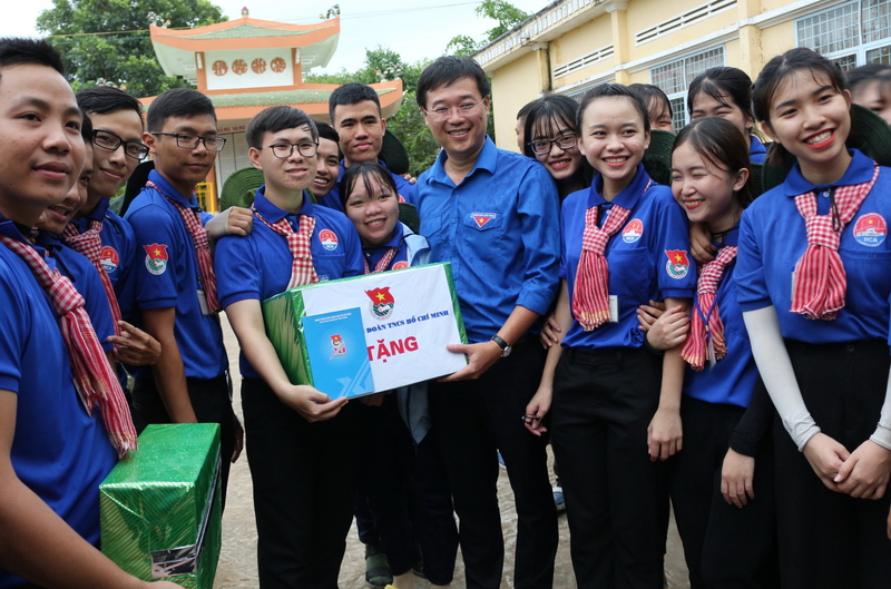 Bí thư thứ nhất Trung ương Đoàn tặng quà động viên các chiến sỹ tình nguyện Mùa hè xanh tại xã Nhị Mỹ |