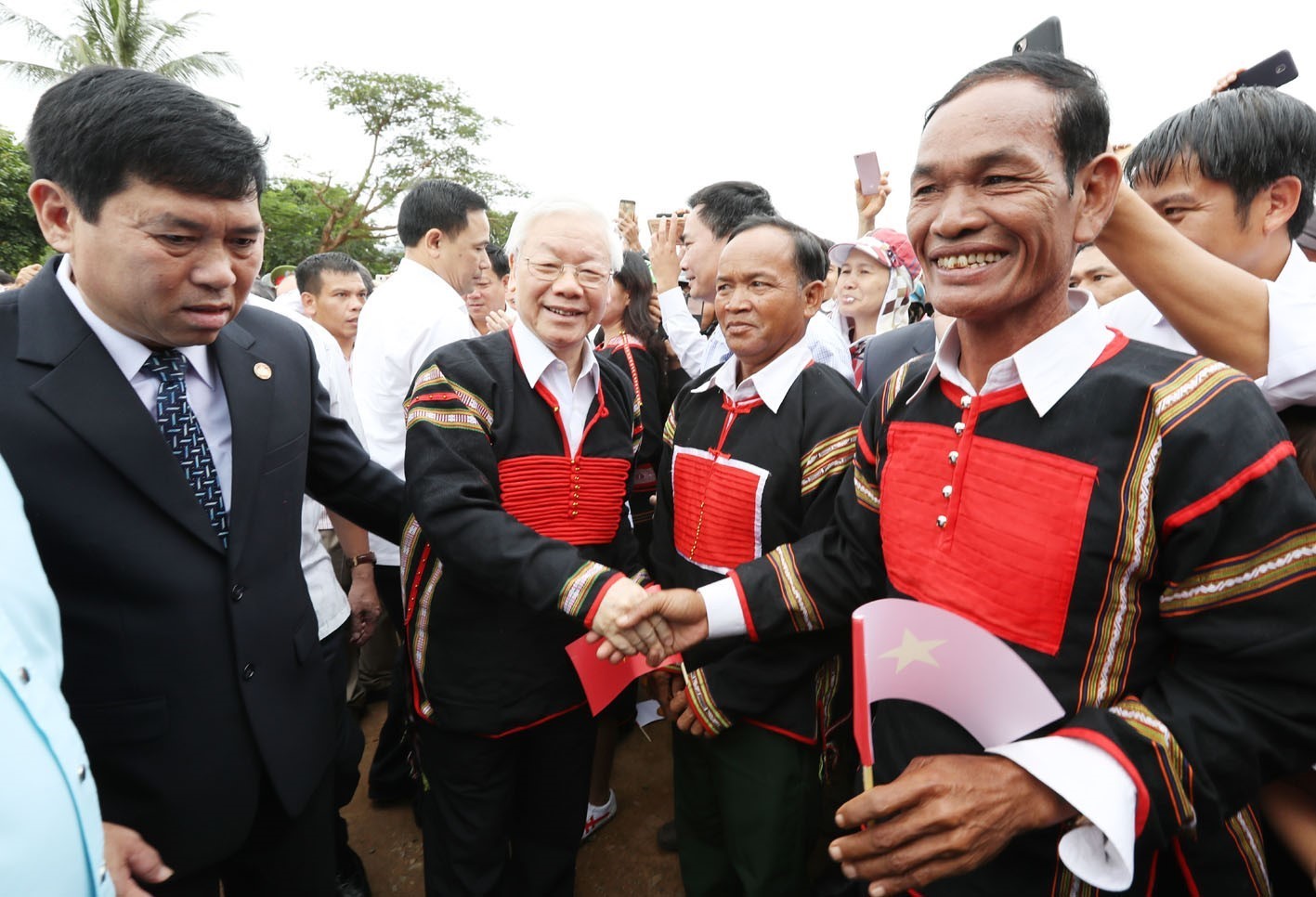Tổng Bí thư Nguyễn Phú Trọng với đồng bào dân tộc các buôn, thôn xã Dur Kmăl, huyện Krông Ana, tỉnh Đắk Lắk_Ảnh: TTXVN