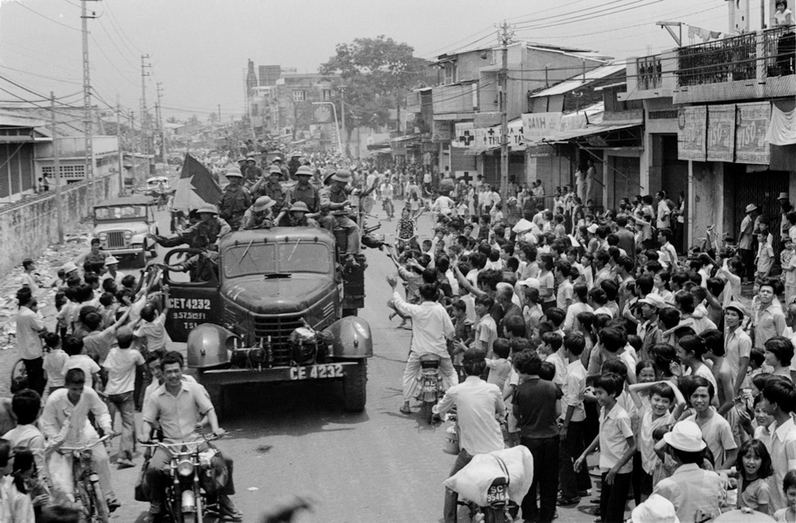 Nhân dân Sài Gòn đổ ra đường, nồng nhiệt chào đón Quân giải phóng tiến vào giải phóng Thành phố, ngày 30-4-1975 _Ảnh: TTXVN