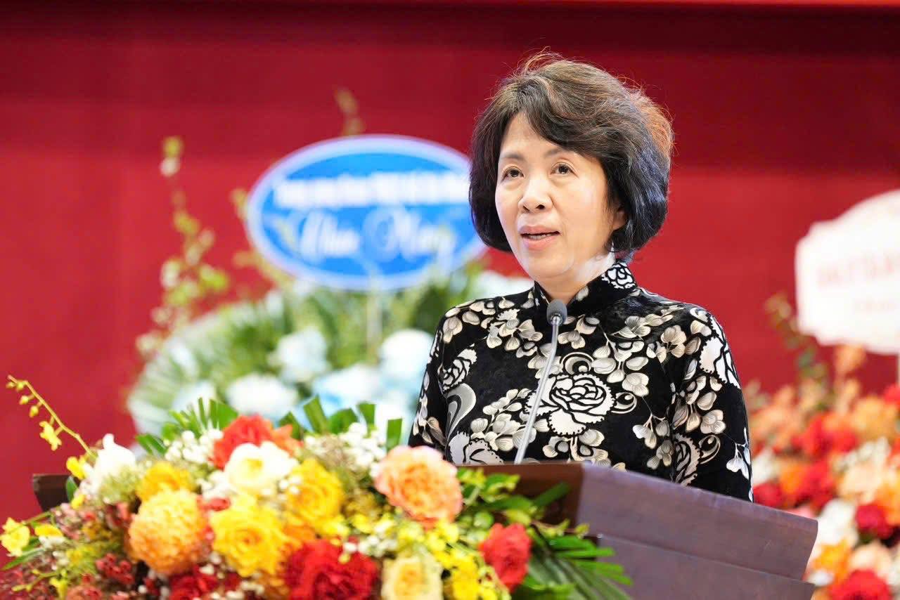 Đồng chí Nguyễn Thị Hoàng Vân- Phó Bí thư Đảng ủy các cơ quan Đảng Trung ương phát biểu tại Đại hội